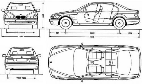 Szkic techniczny BMW Seria 5 E39 Sedan