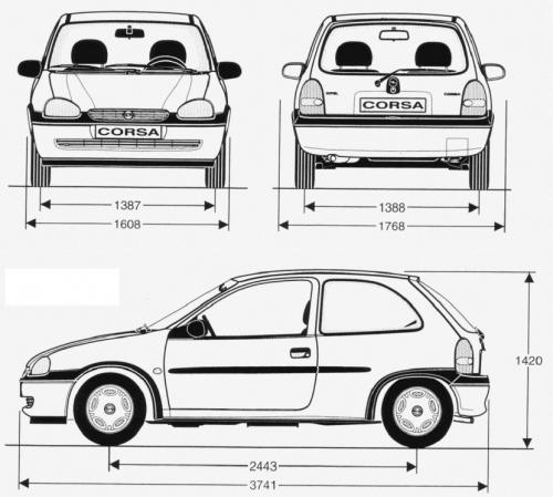 Szkic techniczny Opel Corsa B Hatchback