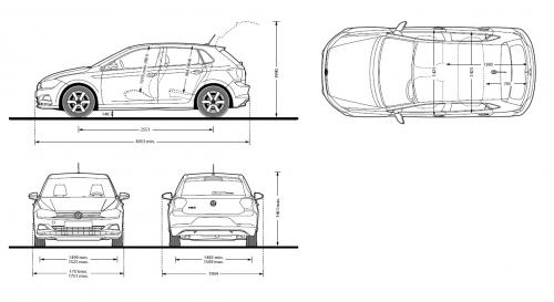 Szkic techniczny Volkswagen Polo VI Hatchback 5d