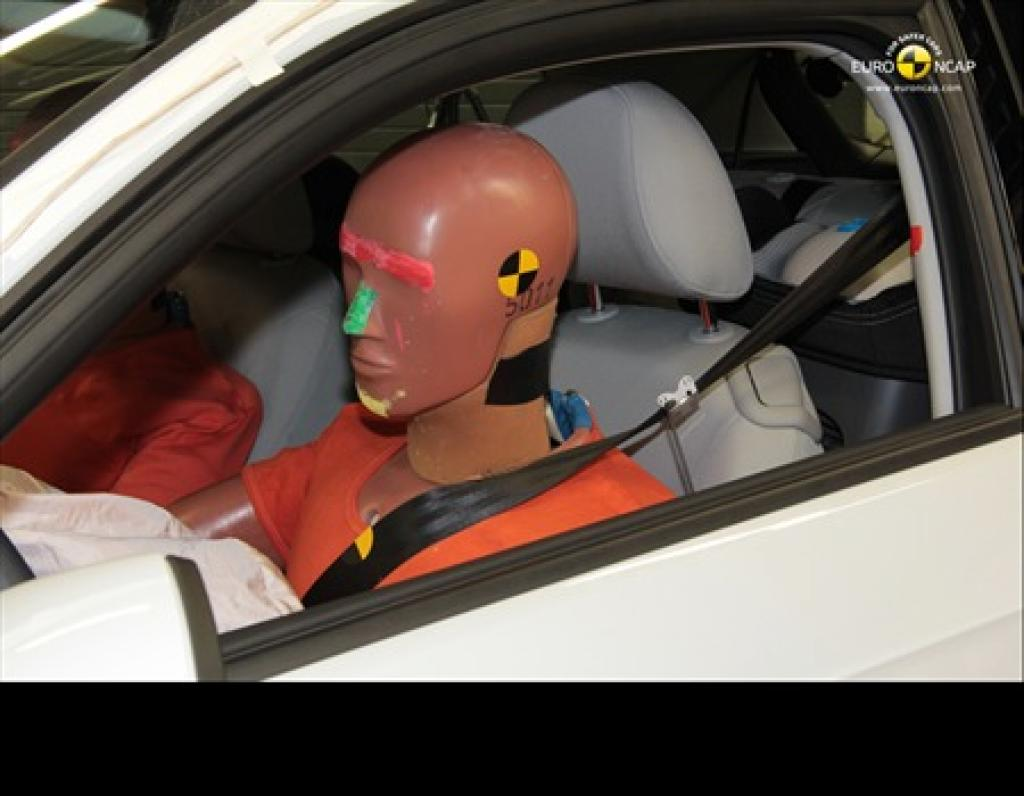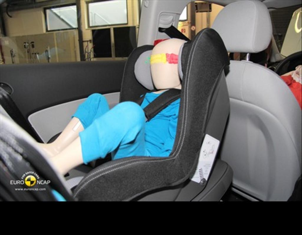 Oba manekiny uzyskały odpowiednią ochronę podczas wpływu czołowego oraz bocznego. Minimalizujący przy tym ryzyko uszkodzeń ciała elementami wnętrza pojazdu. Poduszka powietrzna pasażera może zostać odłączona, co pozwala na ustawienie fotelika tyłem do kierunku jazdy. System informujący kierowcę o aktualnym statusie poduszki powietrznej nie daje jasnej informacji, za co system nie otrzymał nagrody. Umieszczone na stałe, na osłonach przeciwsłonecznych etykiety jasno informują o niebezpieczeństwie płynącym z nieodpowiedniego ustawienia fotelika względem aktywnej poduszki powietrznej.