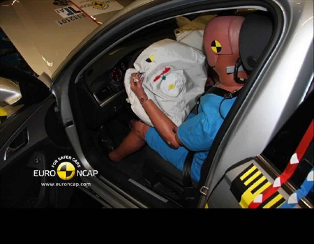 Podczas testu zderzenia czołowego kabina pasażerska pozostała stabilna. A6 jest wyposażony w adaptacyjne poduszki powietrzne przednie Audi i pasy bezpieczeństwa. Czujniki umieszczony w szynie fotele wykrywa odległość między kierowcą a kierownicą. Urządzenie jest dostrojone, wykorzystując przewody wentylacyjne poduszki powietrznej i ograniczniki obciążenia pasów bezpieczeństwa dostosowane do odpowiedniego rozmiaru pasażerów. W teście zderzenia czołowego system zapewnił dobrą ochronę dla głowy kierowcy jak i pasażera. Czujniki na manekinach wykazały dobrą ochronę kolan i ud. Audi wykazało, że pojazd będzie zapewniał podobny poziom ochrony dla wszystkich pasażerów zajmujących dowolne miejsca. W teście bariery bocznej czujniki na manekinach wykazały dobra ochronę wszystkich regionów ciała, jednak drzwi kierowcy po teście były otwarte, co uznano za karalne. W teście słupa bocznego ochrona klatki piersiowej kierowcy była oceniona jako marginalna. Fotele i zagłówki zapewniły dobre zabezpieczenie przed urazami kręgosłupa szyjnego podczas uderzenia w tył pojazdu.