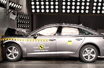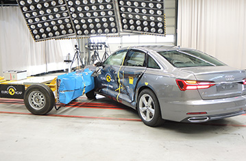 Przedział pasażerski A6 pozostał stabilny w próbach zderzenia czołowego. Odczyty z manekinów wykazały dobrą ochronę kolan i ud kierowcy oraz pasażera. Audi pokazało, że podobny poziom ochrony będzie zapewniony pasażerów o odmiennej posturze, siedzących w różnych pozycjach. W próbie zderzenia czołowego ze sztywną barierą na pełnej szerokości, napinacze pasów bezpieczeństwa oraz ograniczniki obciążenia przy przednich oraz tylnych siedzeniach, zapewniły dostateczną ochronę klatki piersiowej. Ochrona pozostałych krytycznych obszarów ciała była dobra. W próbie bocznego zderzenia z barierą, ochrona wszystkich krytycznych obszarów ciała była dobra. W bardziej wymagającej próbie bocznego zderzenia z słupem, ochrona klatki piersiowej została oceniona jako mierna - w oparciu o odczyty bocznego ściśnięcia żeber manekina. Ochrona pozostałych obszarów ciała była dobra. Próby przeprowadzone na przednich siedzeniach i zagłówkach, wykazały dobrą ochronę kręgosłupa szyjnego w przypadku uderzenia w tył pojazdu. Geometryczna ocena tylnych siedzeń również wykazała dobrą ochronę kręgosłupa szyjnego. Autonomiczny system hamowania awaryjnego (AEB), wykazał się dobrą skutecznością działania w próbach przeprowadzonych przy niskich prędkościach, typowych dla ruchu miejskiego, gdzie często dochodzi do urazów kręgosłupa szyjnego.