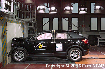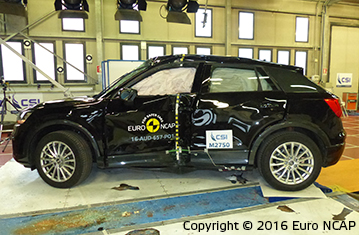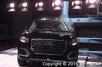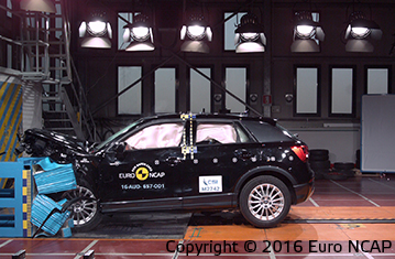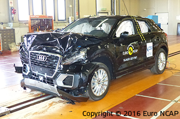 Przedział pasażerski Q2 pozostał stabilny w testach zderzenia czołowego. Odczyty z manekinów wskazały dobra ochronę kolan oraz ud kierowcy i pasażera. Audi pokazało, że podobny poziom ochrony będzie zapewniony dla pasażerów o różnych rozmiarach oraz siedzących na różnych miejscach. Ochrona manekina pasażera była dobra dla wszystkich krytycznych obszarów ciała. W zderzeniu bocznym z barierą jak i w bardziej wymagającej próbie zderzenia z słupem, przyznano maksymalną ilość punktów; z dobrą ochroną dla wszystkich krytycznych obszarów ciała. Testy przednich siedzeń oraz zagłówków wskazały dobrą ochronę przeciwko urazom kręgosłupa szyjnego w przypadku uderzenia w tył pojazdu, a geometryczna ocena tylnych siedzeń również wskazała dobrą ochronę na tych miejscach. Q2 posiada autonomiczny system hamowania awaryjnego, który działa przy niskich prędkościach typowych dla ruchu miejskiego, gdzie często dochodzi do urazów kręgosłupa szyjnego. System sprawdził się dobrze w testach Euro NCAP, unikając kolizji z zatrzymanym pojazdem przy wszystkich testowanych prędkościach.