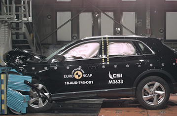 Przedział pasażerski Q3 pozostał stabilny w próbach zderzenia czołowego. Odczyty z manekinów wykazały dobrą ochronę kolan i ud kierowcy oraz pasażera. Audi pokazało, że podobny poziom ochrony będzie zapewniony pasażerów o odmiennej posturze, siedzących w różnych pozycjach. W próbie zderzenia czołowego ze sztywną barierą na pełnej szerokości, ochrona klatki piersiowej była dostateczna zarówno dla kierowcy jak i tylnego pasażera; ochrona wszystkich pozostałych krytycznych obszarów ciała była dobra. Zarówno w próbie bocznego zderzenia z barierą jak i w bardziej wymagającej próbie bocznego zderzenia z słupem, przyznano maksymalną ilość punktów, z dobrą ochroną wszystkich krytycznych obszarów ciała. Próby przeprowadzone na przednich siedzeniach i zagłówkach, wykazały dobrą ochronę kręgosłupa szyjnego w przypadku uderzenia w tył pojazdu. Geometryczna ocena tylnych siedzeń również wykazała dobrą ochronę kręgosłupa szyjnego. Autonomiczny system hamowania awaryjnego (AEB), wykazał się dobrą skutecznością działania w próbach przeprowadzonych przy niskich prędkościach, typowych dla ruchu miejskiego, gdzie często dochodzi do urazów kręgosłupa szyjnego.