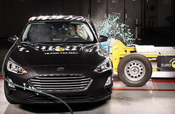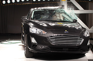 Przedział pasażerski Focusa pozostał stabilny w próbach zderzenia czołowego. Odczyty z manekinów wykazały dobrą ochronę kolan i ud kierowcy oraz pasażera. Ford pokazał, że podobny poziom ochrony będzie zapewniony pasażerów o odmiennej posturze, siedzących w różnych pozycjach. W próbie zderzenia ze sztywną barierą na pełnej szerokości, ochrona klatki piersiowej kierowcy oraz tylnego pasażera została oceniona jako wystarczająca, z dobrą ochroną wszystkich pozostałych krytycznych obszarów ciała. W próbie bocznego zderzenia z barierą, ochrona wszystkich krytycznych obszarów ciała była dobra i Focus zdobył maksymalną ilość punktów. W bardziej wymagającej próbie bocznego zderzenia z słupem, ochrona była dobra dla wszystkich obszarów z wyjątkiem klatki piersiowej, która była chroniona na wystarczającym poziomie. Próby przeprowadzone na przednich siedzeniach i zagłówkach wykazały mierną ochronę przeciwko urazom kręgosłupa szyjnego w przypadku uderzenia w tył pojazdu. Geometryczna ocena tylnych siedzeń wykazała dobrą ochronę kręgosłupa szyjnego. Autonomiczny system hamowania awaryjnego wykazał się dobrą skutecznością działania w próbach przeprowadzonych przy niskich prędkościach, typowych dla ruchu miejskiego. Niestety punkty za system AEB City nie zostały przyznane ponieważ dobra ocena przedniego zagłówka jest niezbędnym warunkiem dla dodatkowej oceny z zakresu aktywnego bezpieczeństwa.