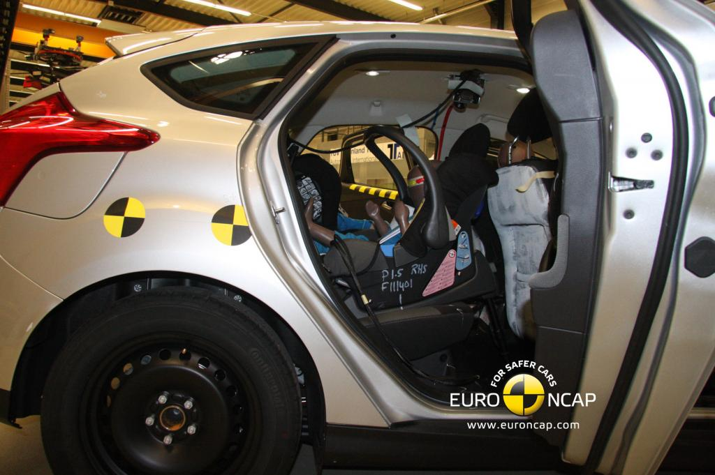 Nowy Ford Focus zdobył maksymalną, dostępną liczbę punktów za ochronę 3-latka w przednich i bocznych testach zderzeniowych, a stracił tylko ułamek punktu za ochronę dziecka 18-miesięcznego. Przełącznik, który wyłącza poduszkę powietrzną pasażera jest dostępny jako opcja, umożliwia on jednak umieszczenie fotelika tyłem do kierunku jazdy. Samochody biorące udział w testach nie były wyposażone w przełącznik i nie dokonano oceny. Etykiety ostrzegawcze mówiące o ustawianiu fotelika dla dziecka w pozycji siedzącej, tyłem do kierunku jazdy bez aktywnej poduszki powietrznej nie były dostępne we wszystkich językach europejskich.