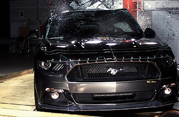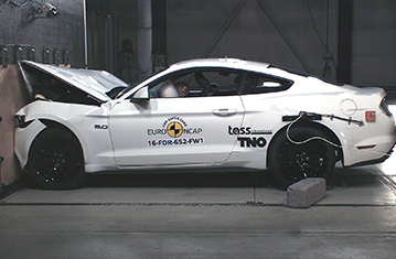 Mustang posiada aktywna maskę. Czujniki w zderzaku wykrywają, kiedy pieszy został potrącony i siłowniki podnoszą maskę, tworząc większą odległość od twardych elementów w komorze silnika. Ford wykazał, że system działał solidnie przy pieszych o różnej posturze i w szerokim zakresie prędkości, stosownie do tego testy zostały przeprowadzone w podniesionym (roboczym) położeniu. Rezultaty testów były dobre na całej powierzchni maski. Ochrona obszaru miednicy była zła w testowanych miejscach, ale zderzak zapewnił dobrą ochronę dla nóg pieszego i zdobył maksymalną ilość punktów w testach Euro NCAP. Autonomiczny system hamownia awaryjnego potrafi wykrywać pieszych jak również inne pojazdy i wypadł dobrze próbach funkcjonalności.