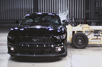 Samochody, które można zamawiać od lipca 2017 roku są standardowo wyposażone w system Ford Pre Collison Assist (z systemem detekcji pieszych, ostrzeżeniem przed kolizją i autonomicznym systemem hamownia awaryjnego) oraz asystentem utrzymania pasa ruchu. Pod względem konstrukcji, nowy samochód jest identyczny w porównaniu z poprzednim, więc ocena wykorzystuje przeprowadzone wcześniej testy zderzeniowe. System zabezpieczeń został zaktualizowany, aby zapobiec "zapadaniu się" poduszki powietrznej kierowcy i pasażera. Dodatkowo, automatyczny system dezaktywacji poduszki powietrznej spełnia teraz wymagania Euro NCAP. Przedział pasażerski Mustanga pozostał stabilny w testach zderzenia czołowego z odkształcalną barierą. Odczyty z manekinów wykazały dobrą ochronę kolan i ud kierowcy oraz pasażera. Analizy danych z manekina wykazały, że głowa kierowcy zapadła się w poduszce powietrznej, oznacza to, że w poduszce było niewystarczające ciśnienie, aby zapobiec kontaktowi głowy z kierownicą przez materiał opróżnionej poduszki. Głowa manekina pasażera również zapadła się w poduszce powietrznej w kierunku deski rozdzielczej, co wynikało z niewystarczającego ciśnienia w poduszce i niedostatecznego utrzymania pasażerów większej postury przez ogranicznik obciążenia pasów bezpieczeństwa. Ford ulepszył działanie poduszek montowanych w najnowszym Mustangu, zapobiegając "zapadaniu się" poduszek. Natomiast test zderzenia czołowego nie został powtórzony i punkty oddają wyniki odnotowane w pierwotnym teście. W próbie na pełnej szerokości sztywnej bariery ochrona kierowcy była dobra, poza klatką piersiową której ochrona była wystarczająca. Natomiast pasażer tylnego siedzenia wsunął się pod część biodrową pasa bezpieczeństwa (zjawisko zwane "nurkowaniem") i wynik dla kolan, ud i miednicy został obniżony, a ochrona została oceniona jako bardzo słaba. Ochrona klatki piersiowej została również oceniona jako bardzo słaba jako, że tylny pas bezpieczeństwa (który nie posiada ani napinaczy, ani ograniczników obciążenia) wykazał w teście nadmiernie wysokie siły rozciągające. Odczyty z manekina dotyczące przeciążeń głowy, wskazały słabą ochronę głowy dla tylnego pasażera. W bocznym zderzeniu z barierą, Mustang zdobył maksymalną ilość punktów z dobrą ochroną wszystkich krytycznych obszarów ciała. Nawet w bardziej wymagającej próbie bocznego zderzenia z słupem, ochrona klatki piersiowej była wystarczająca, a pozostałych obszarów ciała dobra. Testy przednich foteli i zagłówków wykazały mierny poziom ochrony przeciwko urazom kręgosłupa szyjnego w przypadku uderzenia w tył pojazdu. Geometryczna ocena tylnych siedzeń wykazała zły poziom ochrony kręgosłupa szyjnego na tych miejscach. Najnowszy Mustang posiada standardowo autonomiczny system hamownia awaryjnego. System wypadł dobrze w próbach działania przy niskich prędkościach typowych dla ruchu miejskiego, gdzie dochodzi do wielu urazów kręgosłupa szyjnego. Natomiast, system nie kwalifikuje się do zdobycia punktów jako, że pasywna ochrona kręgosłupa szyjnego była niewystarczająca.