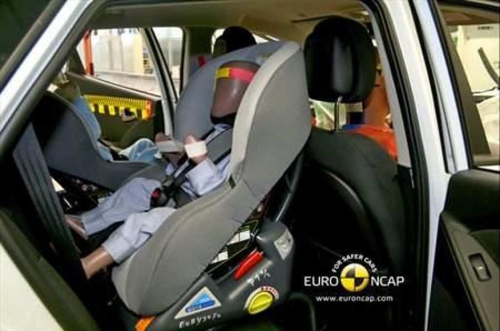 Przednie przesunięcie głowy manekina 3-latka, siedzącego w foteliku przodem, nie było nadmierne. W czasie zderzenia bocznego oba manekiny były prawidłowo osłaniane przez boki fotelików. Poduszka powietrzna pasażera może być dezaktywowana by umożliwić montaż fotelika tyłem, a informacja o statusie poduszki jest jasna. Trwała etykieta ostrzega przed niebezpieczeństwem montażu fotelika bez uprzedniego unieruchomienia poduszki.