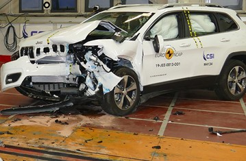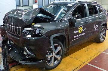 Przedział pasażerski Cherokee pozostał stabilny w próbach zderzenia czołowego. Odczyty z manekinów wykazały dobrą ochronę kolan i ud zarówno kierowcy jak i pasażera. Jeep pokazał, że podobny poziom ochrony będzie zapewniony pasażerów o odmiennej posturze, siedzących w różnych pozycjach. W próbie zderzenia ze sztywną barierą na pełnej szerokości, ochrona wszystkich krytycznych obszarów ciała kierowcy była dobra lub wystarczająca. Ochrona została oceniona jako mierna dla klatki piersiowej tylnego pasażera, w oparciu o odczyty z manekina dotyczące ściśnięcia, ale w pozostałych przypadkach ochrona była dobra. W próbie bocznego zderzenia z barierą, ochrona była dobra dla wszystkich krytycznych obszarów ciała i Cherokee zdobyło maksymalną ilość punktów. W bardziej wymagającej próbie bocznego zderzenia z słupem, ochrona dla wszystkich obszarów ciała była dobra. Próby przeprowadzone na przednich siedzeniach i zagłówkach, wykazały mierną ochronę kręgosłupa szyjnego w przypadku uderzenia w tył pojazdu. Geometryczna ocena tylnych siedzeń, również wykazała mierną ochronę kręgosłupa szyjnego. Cherokee posiada w standardowym wyposażeniu autonomiczny system hamowania awaryjnego (AEB), który działa przy niskich prędkościach, typowych dla ruchu miejskiego, gdzie często dochodzi do urazów kręgosłupa szyjnego. Testy tej funkcjonalności wykazały słabą wydajność, system nie łagodził skutków kolizji przy prędkościach poniżej 20km/h. W każdym razie samochód nie kwalifikował się do punktacji, ze względny na zbyt niską ocenę końcową testu uderzenia za tyłu.