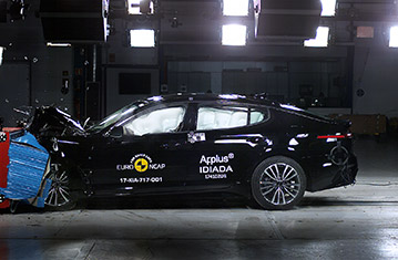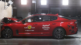 Przedział pasażerski Stingera pozostał stabilny w próbach zderzenia czołowego. Odczyty z manekinów wykazały dobra ochronę kolan i ud kierowcy oraz pasażera. Kia pokazała, że podobny poziom ochrony będzie zapewniony dla pasażerów o odmiennej posturze, siedzących w różnych pozycjach. W próbie zderzenie ze sztywną barierą na pełnej szerokości, miednica tylnego pasażera wysunęła się spod części biodrowej pasa bezpieczeństwa. Mimo, że wartości obrażeń odniesionych przez manekina nie były nadmierne, samochód został ukarany i ocena tej części ciała została oceniona jako bardzo słaba. W tej próbie ochrona wszystkich krytycznych obszarów ciała manekina kierowcy była dobra. W próbie bocznego zderzenia z barierą, Stinger zdobył maksymalną ilość punktów, z dobrą ochroną wszystkich krytycznych obszarów ciała. Również w bardziej wymagającej próbie bocznego zderzenia z słupem, ochrona klatki piersiowej była wystarczająca, a pozostałych obszarów ciała dobra. Próby przeprowadzone na przednich fotelach i zagłówkach wykazały dobrą ochronę przeciwko urazom kręgosłupa szyjnego, w przypadku uderzenia w tył pojazdu. Geometryczna ocena tylnych siedzeń, wykazał mierną ochronę kręgosłupa szyjnego. Stinger posiada w standardzie autonomiczny system hamowania awaryjnego. W próbach działania systemu przy niskich prędkościach, kiedy dochodzi do wielu urazów kręgosłupa szyjnego, system zdobył maksymalną ilość punktów, unikając kolizji przy wszystkich prędkościach testu.