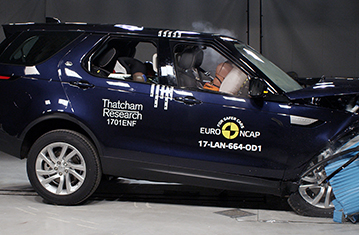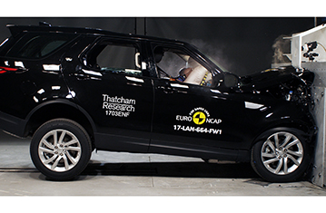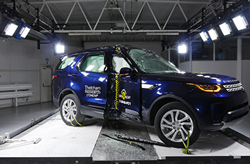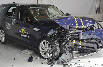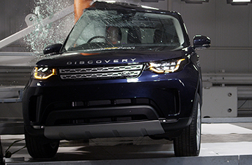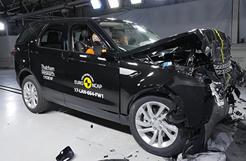 Przedział pasażerski Discovery pozostał stabilny w testach zderzenia czołowego. Odczyty z manekinów wskazały dobra ochronę kolan oraz ud kierowcy i pasażera. Land Rover pokazał, że podobny poziom ochrony będzie zapewniony dla pasażerów o różnych wielkościach, siedzących na różnych miejscach. Poduszka powietrzna kierowcy nie zapewniła wystarczającego ciśnienia aby zapobiec zapadaniu się głowy w kierunku kierownicy i samochód został za to ukarany. W próbie zderzenia czołowego na pełnej szerokości sztywnej bariery, ochrona kierowcy była dobra, z wyjątkiem klatki piersiowej, której ochrona była wystarczająca. Odczyty ściśnięcia klatki piersiowej tylnego pasażera wskazały mierną ochronę tej części ciała, z dobrą ochrona wszystkich pozostałych obszarów. Odczyty z manekinów wskazały dobrą ochronę wszystkich krytycznych obszarów ciała zarówno w próbie bocznego zderzenia z barierą jak i w bardziej wymagającej próbie bocznego zderzenia z słupem. Aczkolwiek, w próbie zderzenia z barierą drzwi kierowcy otworzyły się i samochód został za to ukarany. Testy przednich foteli i zagłówków wykazały dobrą ochronę przeciwko urazom kręgosłupa szyjnego w przypadku uderzenia w tył pojazdu. Natomiast geometryczna ocena tylnych siedzeń wskazała bardzo słabą ochronę kręgosłupa szyjnego. Discovery posiada w standardzie autonomiczny system hamowania awaryjnego. W testach działania przy niskich prędkościach system sprawdził się dobrze, unikając zderzeń do 35km/h i redukując prędkość kolizji w próbach przy prędkości do 50km/h.