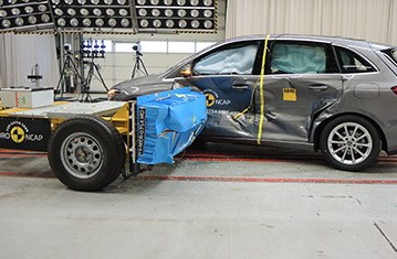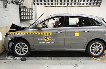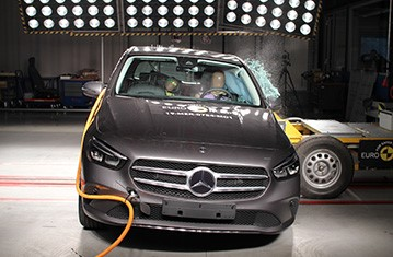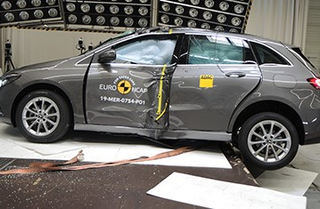 Przedział pasażerski B-Klasy pozostał stabilny w próbach zderzenia czołowego. Odczyty z manekinów wykazały dobrą ochronę kolan i ud zarówno kierowcy jak i pasażera. Mercedes-Benz pokazał, że podobny poziom ochrony będzie zapewniony pasażerów o odmiennej posturze, siedzących w różnych pozycjach. Ochrona przedniego pasażera była dobra dla wszystkich krytycznych obszarów ciała. W próbie zderzenia ze sztywną barierą na pełnej szerokości, ochrona kierowcy była dobra lub wystarczająca dla wszystkich krytycznych obszarów ciała. Dla tylnego pasażera, odczyty z manekina dotyczące ściśnięcia klatki piersiowej wykazały mierną ochronę tej części ciała, ale w pozostałych przypadkach ochrona była dobra lub wystarczająca. W próbie bocznego zderzenia z barierą, ochrona była dobra dla wszystkich obszarów ciała i samochód zdobył maksymalną ilość punktów. W bardziej wymagającej próbie bocznego zderzenia z słupem, ochrona była wystarczająca dla klatki piersiowej oraz dobra dla pozostałych krytycznych obszarów ciała. Próby przeprowadzone na przednich siedzeniach i zagłówkach, wykazały dobrą ochronę kręgosłupa szyjnego w przypadku uderzenia w tył pojazdu. Geometryczna ocena tylnych siedzeń, również wykazała dobrą ochronę kręgosłupa szyjnego. Będący standardowym wyposażeniem, autonomiczny system hamowania awaryjnego (AEB), wykazał się dobrą skutecznością działania w próbach przy niskich prędkościach, kiedy często dochodzi do urazów kręgosłupa szyjnego.