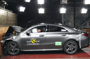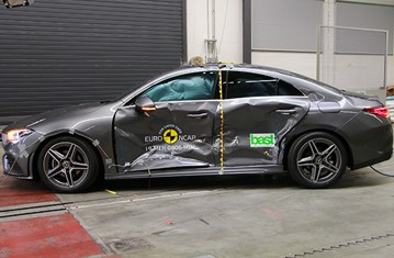 Przedział pasażerski CLA pozostał stabilny w próbach zderzenia czołowego. Odczyty z manekinów wykazały dobrą ochronę kolan i ud kierowcy oraz pasażera. Mercedes-Benz pokazał, że podobny poziom ochrony będzie zapewniony pasażerów o odmiennej posturze, siedzących w różnych pozycjach. W próbie zderzenia czołowego ze sztywną barierą na pełnej szerokości, ochrona wszystkich krytycznych obszarów ciała była dobra lub dostateczna zarówno dla kierowcy jak i dla tylnego pasażera. W próbie bocznego zderzenia z barierą, odczyty z manekinów wykazały dobrą ochronę wszystkich krytycznych obszarów ciała. Natomiast tylne drzwi od strony uderzenia otworzyły się podczas próby i wyniki został obniżony ze względu na ryzyko wypadnięcia pasażera. W bardziej wymagającej próbie bocznego zderzenia z słupem, ochrona klatki piersiowej była wystarczająca, a pozostałych krytycznych obszarów ciała dobra. Próby przeprowadzone na przednich siedzeniach i zagłówkach, wykazały dobrą ochronę kręgosłupa szyjnego w przypadku uderzenia w tył pojazdu. Geometryczna ocena tylnych siedzeń, również wykazała dobrą ochronę kręgosłupa szyjnego. Będący standardowym wyposażeniem, autonomiczny system hamowania awaryjnego (AEB), wykazał się dobrą skutecznością działania w próbach przy niskich prędkościach, kiedy często dochodzi do urazów kręgosłupa szyjnego, unikając lub łagodząc kolizje we wszystkich scenariuszach testu.