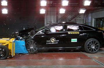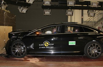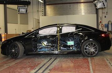 Przedział pasażerski pojazdu Mercedes EQS pozostał stabilny w próbach zderzenia czołowego. Odczyty z manekinów wykazały dobrą ochronę kolan oraz ud, zarówno kierowcy jak i pasażera. Mercedes pokazał, że podobny poziom ochrony będzie zapewniony pasażerów o odmiennej posturze, siedzących w różnych pozycjach. Analiza bariery, z którą zderzył się EQS, wykazała, że testowany pojazd byłby umiarkowanie łagodnym partnerem podczas kolizji. Odczyty z manekinów wykazały, że podczas zderzenia ze sztywną barierą, na całej szerokości pojazdu, wszystkie krytyczne obszary ciała kierowcy jak i pasażera siedzącego z tyłu, były na tyle dobrze chronione, że EQS uzyskał maksymalną liczbę punktów w tej części oceny. W próbie bocznego zderzenia z barierą oraz w próbie bocznego uderzenia w słup, ochrona wszystkich krytycznych obszarów ciała była dobra, a pojazd uzyskał maksymalną liczbę punktów w tej części oceny. W ocenie ochrony przed wypadnięciem manekina (jego ruch w kierunku drugiej strony pojazdu), w przypadku zderzenia bocznego, ochrona została oceniona jako odpowiednia. Mercedes EQS został wyposażony w środkową poduszkę powietrzną, która łagodzi obrażenia między pasażerami podczas zderzeń bocznych. Poduszka powietrzna wypadła dobrze w testach Euro NCAP. Próby przeprowadzone na przednich siedzeniach i zagłówkach, wykazały dobrą ochronę odcinka szyjnego kręgosłupa w przypadku uderzenia w tył pojazdu. Geometryczna ocena tylnych siedzeń, również wykazała dobrą ochronę odcinka szyjnego kręgosłupa. Testowany model, w standardzie, został wyposażony w zaawansowany system eCall, który ostrzega służby ratunkowe w przypadku poważnego wypadku oraz w system zapobiegający wtórnym zderzeniom.