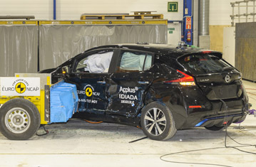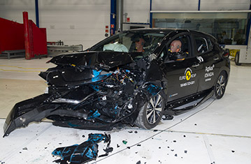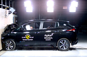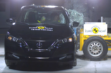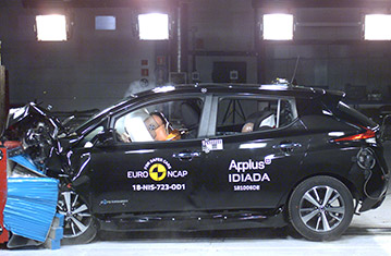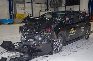 Przedział pasażerski LEAFa pozostał stabilny w próbach zderzenia czołowego. Ochrona przedniego manekina była dobra dla wszystkich krytycznych obszarów ciała. Odczyty z czujników wykazały, że doszło do kontaktu głowy manekina ze strukturą wnętrza pojazdu, wskazując na to, że w poduszce panowało niewystarczające ciśnienie. Ochrona kolan i ud była dobra dla obu przednich manekinów. NIssan pokazał, że podobny poziom ochrony będzie zapewniony dla pasażerów o odmiennej posturze, siedzących w różnych pozycjach. W próbie zderzenia ze sztywną barierą na pełnej szerokości, ochrona manekina kierowcy była dobra, ale odczyty wykazały, że siła w części biodrowej pasa bezpieczeństwa spadła w czasie zderzenia. Odczyty z klatki piersiowej tylnego manekina wykazały mierną ochronę. Zarówno w próbie bocznego zderzenia z barierą, jak i w bardziej wymagającej próbie bocznego zderzenia z słupem, ochrona wszystkich krytycznych obszarów ciała była dobra i LEAF zdobył maksymalną ilość punktów w tych próbach. Próby przeprowadzone na przednich siedzeniach i zagłówkach, wykazały dobrą ochronę przeciwko urazom kręgosłupa szyjnego w przypadku uderzenia w tył pojazdu. Geometryczna ocena tylnych siedzeń wykazała mierną ochronę kręgosłupa szyjnego. Autonomiczny system hamowania awaryjnego, wykazał się dobrą skutecznością działania w próbach przy niskich prędkościach, typowych dla ruchu miejskiego, gdzie często dochodzi do urazów kręgosłupa szyjnego.