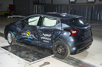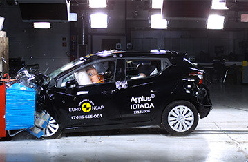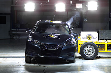 Przedział pasażerski Micry pozostał stabilny w testach zderzenia czołowego. Odczyty z manekinów wykazały dobrą ochronę kolan i ud kierowcy oraz pasażera. Nissan pokazał, że podobny poziom ochrony będzie zapewniony dla pasażerów o różnych rozmiarach oraz siedzących na różnych miejscach. W próbie zderzenia na pełnej szerokości sztywnej bariery kierowca był dobrze chroniony. Odczyty z manekinów dla tylnego pasażera wykazały, że miednica wślizgnęła się pod pas bezpieczeństwa i ochrona tego obszaru ciała została oceniona jak bardzo słaba. Poza tym ochrona była dobra lub wystarczająca. W próbie bocznego zderzenia z barierą, wszystkie krytyczne obszary ciała były dobrze chronione i Micra zdobyła maksymalną ilość punktów. W bardziej wymagającej próbie bocznego zderzenia z słupem, ochrona klatki piersiowej była wystarczająca, a pozostałych obszarów ciała - dobra. Próby przeprowadzone na przednich siedzeniach i zagłówkach wykazały dobrą ochronę przeciwko urazom kręgosłupa szyjnego w przypadku uderzenia w tył pojazdu, natomiast geometryczna ocena tylnich siedzeń wykazała bardzo słabą ochronę kręgosłupa szyjnego. Micra w standardowym wyposażeniu posiada autonomiczny system hamowania awaryjnego działający przy niskich prędkościach, typowych dla ruchu miejskiego, gdzie często dochodzi do urazów kręgosłupa szyjnego. System wypadł dobrze w testach Euro NCAP unikając kolizji przy większości sprawdzanych prędkości.