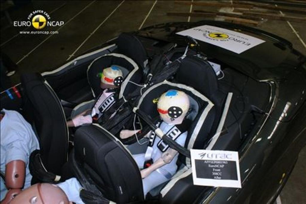 Kabina pasażerska pozostała stabilna w trakcie zderzenia. Pomiary obciążenia wykazały dobrą ochronę kolan i ud kierowcy oraz pasażera. Peugeot udowodnił również, że zapewnia taki sam poziom bezpieczeństwa pasażerom różnych rozmiarów i siedzących w różnych pozycjach. Auto uzyskało maksymalną liczbę punktów za test zderzenia bocznego. W czasie bardziej poważnego zderzenia ze słupem, ochrona klatki piersiowej była 'marginalna' na podstawie pomiarów obciążenia. Słaba osłona szyjnego odcinka kręgosłupa podczas zderzenia od tyłu - brak punktów na 3 przeprowadzone testy.