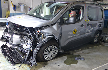 Przedział pasażerski Riftera pozostał stabilny w próbach zderzenia czołowego. Odczyty z manekinów wykazały dobrą ochronę kolan i ud kierowcy oraz pasażera. Peugeot pokazał, że podobny poziom ochrony będzie zapewniony pasażerów o odmiennej posturze, siedzących w różnych pozycjach. W próbie zderzenia ze sztywną barierą na pełnej szerokości, ochrona manekina kierowcy była mierna dla klatki piersiowej i szyi oraz dobra dla pozostałych krytycznych obszarów ciała. Ochrona tylnego pasażera była dobra lub dostateczna. W próbie bocznego zderzenia z barierą, ochrona wszystkich krytycznych obszarów ciała była dobra i Rifter zdobył maksymalną ilość punktów. Nawet w bardziej wymagającej próbie bocznego zderzenia z słupem, ochrona klatki piersiowej była dostateczna, a pozostałych krytycznych obszarów ciała dobra. Próby przeprowadzone na przednich siedzeniach i zagłówkach wykazały dobrą ochronę przeciwko urazom kręgosłupa szyjnego w przypadku uderzenia w tył pojazdu. Geometryczna ocena tylnych siedzeń, również wykazała dobrą ochronę kręgosłupa szyjnego. Będący standardowym wyposażeniem, autonomiczny system hamowania awaryjnego (AEB), wykazał się dobrą skutecznością działania w próbach przeprowadzonych przy niskich prędkościach, typowych dla ruchu miejskiego, gdzie często dochodzi do urazów kręgosłupa szyjnego.