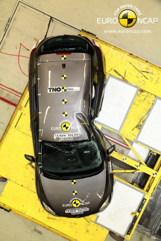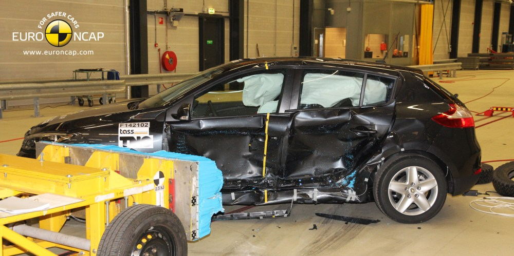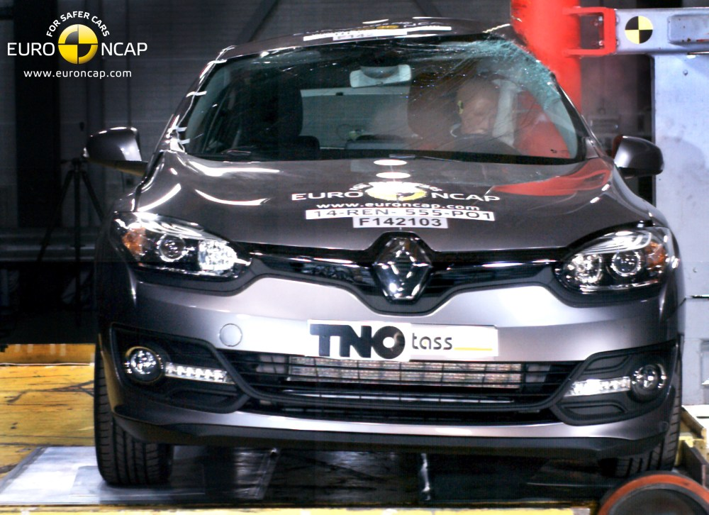 Podczas zderzenia czołowego przedział dla podróżnych pozostał stabilny. Czujniki umieszczone na manekinach wykazały dobrą ochronę kolan i kości udowych kierowcy i pasażera. Renault pokazał, że podobny poziom ochrony będzie zapewniony pasażerom innych wielkości, zajmujących pozostałe miejsca. W teście bariery bocznej Mégane zdobył maksymalne punkty za dobrą ochronę wszystkich obszarów ciała. W poważniejszym teście słupa bocznego, czujniki umieszczone na manekinach wykazały marginalną ochronę klatki piersiowej. Miejsca i zagłówki zapewniły marginalną ochronę przed urazami kręgosłupa szyjnego, w przypadku uderzenia w tył pojazdu. Ochrona zapewniona przez zagłówki siedzeń tylnych oceniona została na podstawie geometrii, oferowana ochrona oceniona została oceniona jako słaba.