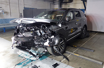 Przedział pasażerski pozostał stabilny w próbach zderzenia czołowego. Z wyjątkiem prawego piszczela kierowcy, którego ochrona została oceniona jako mierna, ochrona obu dorosłych manekinów była dobra, łącznie z kolanami i udami. Renault pokazało, że podobny poziom ochrony będzie zapewniony dla pasażerów o odmiennej posturze, siedzących w różnych pozycjach. W próbie zderzenia na pełnej szerokości ze sztywną barierą, ochrona głowy i klatki piersiowej tylnego pasażera została oceniona jako mierna; ochrona pozostałych krytycznych obszarów ciała była dobra lub wystarczająca. Zarówno w próbie bocznego zderzenia z barierą, jak i w bardziej wymagającej próbie bocznego zderzenia z słupem, ochrona była dobra i Koleos zdobył maksymalną ilość punktów w tych próbach. Testy przeprowadzone na przednich fotelach i zagłówkach wykazały dobrą ochronę przeciwko urazom kręgosłupa szyjnego w przypadku uderzenia w tył pojazdu. Geometryczna ocena tylnych siedzeń, również wykazała dobrą ochronę kręgosłupa szyjnego. Koleos posiada w standardzie autonomiczny system hamownia awaryjnego. Próby działania tego systemu przy niskich prędkościach, przy których dochodzi do wielu urazów kręgosłupa szyjnego, wykazały jego dobre działanie.