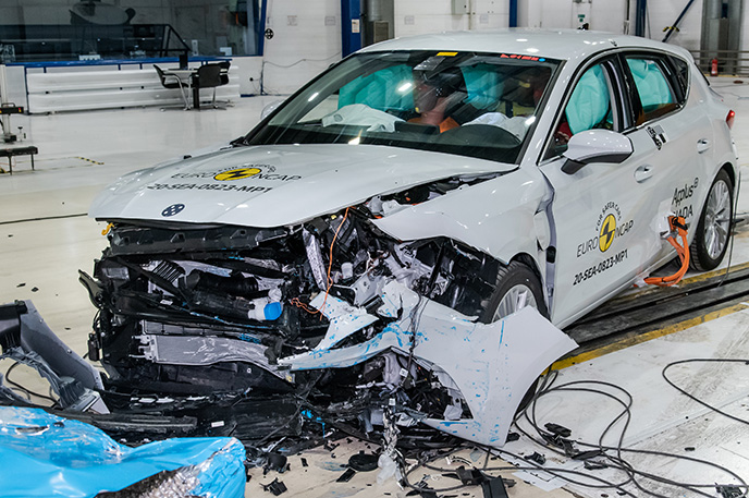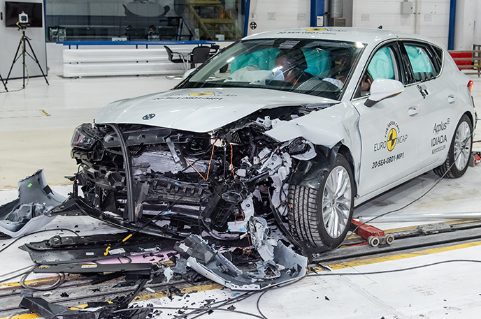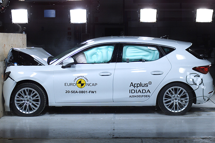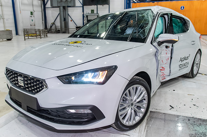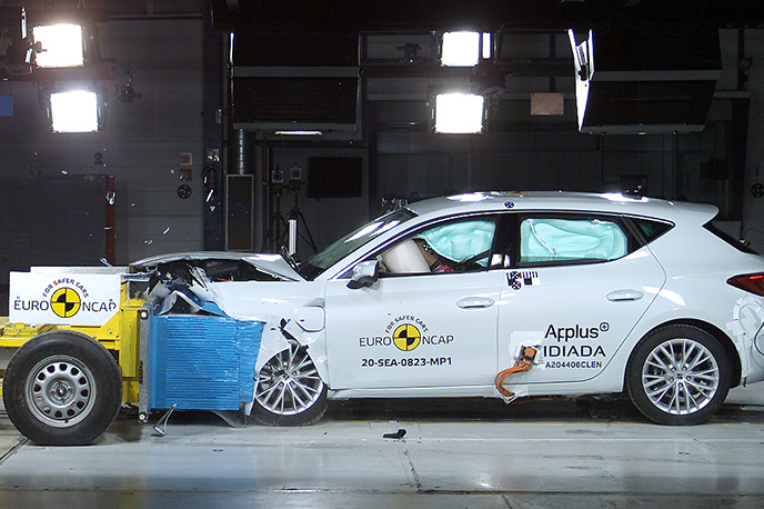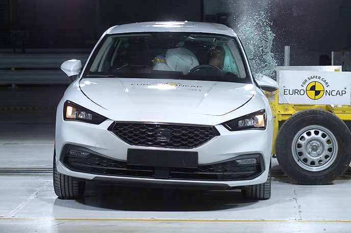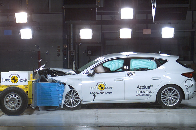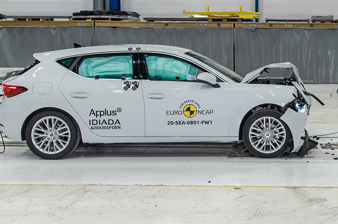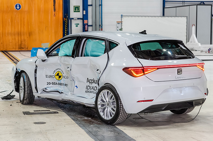 Przedział pasażerski Seata Leon pozostał stabilny w próbach zderzenia czołowego. Ochrona klatki piersiowej została oceniona jako marginalna. Odczyty z manekinów wykazały dobrą ochronę kolan i ud zarówno kierowcy jak i pasażera. Seat pokazał, że podobny poziom ochrony będzie zapewniony pasażerów o odmiennej posturze, siedzących w różnych pozycjach. Analiza bariery, z którą zderzył się Leon, w pewnych obszarach, wykazała uszkodzenia. W związku z tym do wyniku ogólnego została doliczona drobna kara, za ryzyko jakie stanowi to dla drugiego pojazdu. W próbie zderzenia ze sztywną barierą na pełnej szerokości, ochrona wszystkich krytycznych obszarów ciała kierowcy oraz pasażera siedzącego na tylnym siedzeniu, była dobra lub wystarczająca. W próbie bocznego zderzenia z barierą, ochrona była dobra lub wystarczająca dla wszystkich krytycznych obszarów ciała. W bardziej wymagającej próbie bocznego zderzenia ze słupem, ochrona dla klatki piersiowej oceniono jako co najmniej wystarczającą. W ocenie ochrony przed wypadnięciem manekina (jego ruch w kierunku drugiej strony pojazdu) w przypadku zderzenia bocznego zostało ocenione jako wystarczające. Leon wyposażony jest w środkowe poduszki powietrzne, które chronią przed interakcją między pasażerami podczas zderzeń bocznych. System ten podczas testów działał dobrze, zapewniając dobrą ochronę głowy obu pasażerów na przednich siedzeniach. Próby przeprowadzone na przednich siedzeniach i zagłówkach, wykazały dobrą ochronę odcinka szyjnego kręgosłupa w przypadku uderzenia w tył pojazdu. Geometryczna ocena tylnych siedzeń, również wykazała dobrą ochronę odcinka szyjnego kręgosłupa. Leon posiada w standardowym wyposażeniu autonomiczny system hamowania po kolizyjnego, który uruchamia hamulce natychmiast po zderzeniu, aby zapobiec udziałowi pojazdu w zderzeniu wtórnym. Pojazd posiada również zaawansowany system e-Call, który w razie wypadku automatycznie wysyła wiadomość do służb ratunkowych podając lokalizację pojazdu.