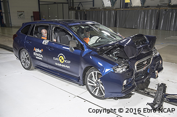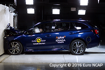 pasażerski pozostał stabilny w testach zderzenia czołowego. Czujniki umieszczone w manekinach wykazały dobrą ochronę kolan i ud kierowcy i pasażera. Subaru pokazało, że podobny poziom ochrony będzie zapewniony dla pasażerów o różnych rozmiarach oraz siedzących na różnych miejscach. Ochrona klatki piersiowej kierowcy została oceniona jako marginalna z powodu odczytów ściśnięcia klatki piersiowej. W próbie na pełnej szerokości sztywnej bariery ochrona była dobra z wyjątkiem klatki piersiowej kierowcy dla której ochrona była wystarczająca oraz ochrony klatki piersiowej pasażera tylnej kanapy dla której ochrona była marginalna. W bocznym zderzeniu z barierą, Levorg uzyskał maximum punktów z dobrą ochroną dla wszystkich krytycznych obszarów ciała. W trudniejszej próbie zderzenia bocznego z słupem Levorg zapewnił dobrą ochronę dla wszystkich obszarów ciała z wyjątkiem klatki piersiowej której ochrona była wystarczająca. Testy pokazały, że ochrona kręgów szyjnych zapewniona przez przednie fotele oraz zagłówki w przypadku uderzenia w tył była dobra, także ocena geometryczna tylnych siedzeń wykazała dobrą ochronę. Zwiększoną ochronę kręgów szyjnych zapewnia autonomiczny system hamowania awaryjnego. System sprawdził się dobrze w testach przy niskich prędkościach typowych dla ruchu miejskiego, gdzie często w zderzeniach dochodzi do urazów kręgów szyjnych.