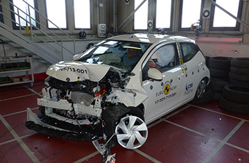 Przedział pasażerski Aygo pozostał stabilny w próbach zderzenia czołowego. Odczyty z manekinów wykazały dobra ochronę kolan i ud kierowcy oraz pasażera. Niestety, struktury w desce rozdzielczej, zostały uznane jako prezentujące zagrożenie dla pasażerów o odmiennej posturze, siedzących w różnych pozycjach i ochrona tego obszaru ciała została obniżona do miernej. W próbie zderzenia ze sztywną barierą na pełnej szerokości, ochrona głowy, szyi oraz klatki piersiowej manekina tylnego pasażera została oceniona jako bardzo słaba i nie przyznano żadnych punktów dla tego manekina. Ochrona manekina kierowcy w tym samym teście była dobra lub wystarczająca. Zarówno w próbie bocznego zderzenia z barierą, jak i w bardziej wymagającej próbie bocznego zderzenia z słupem, ochrona wszystkich krytycznych obszarów ciała była dobra i Aygo zdobyło maksymalną ilość punktów. Próby przeprowadzone na przednich siedzeniach i zagłówkach wykazały dobrą ochronę kręgosłupa szyjnego w przypadku uderzenia w tył pojazdu. Geometryczna ocena tylnych siedzeń wykazała mierną ochronę kręgosłupa szyjnego. Aygo posiada autonomiczny system hamownia awaryjnego, będący częścią opcjonalnego pakietu, którego ocena nie została zawarta w tym badaniu.