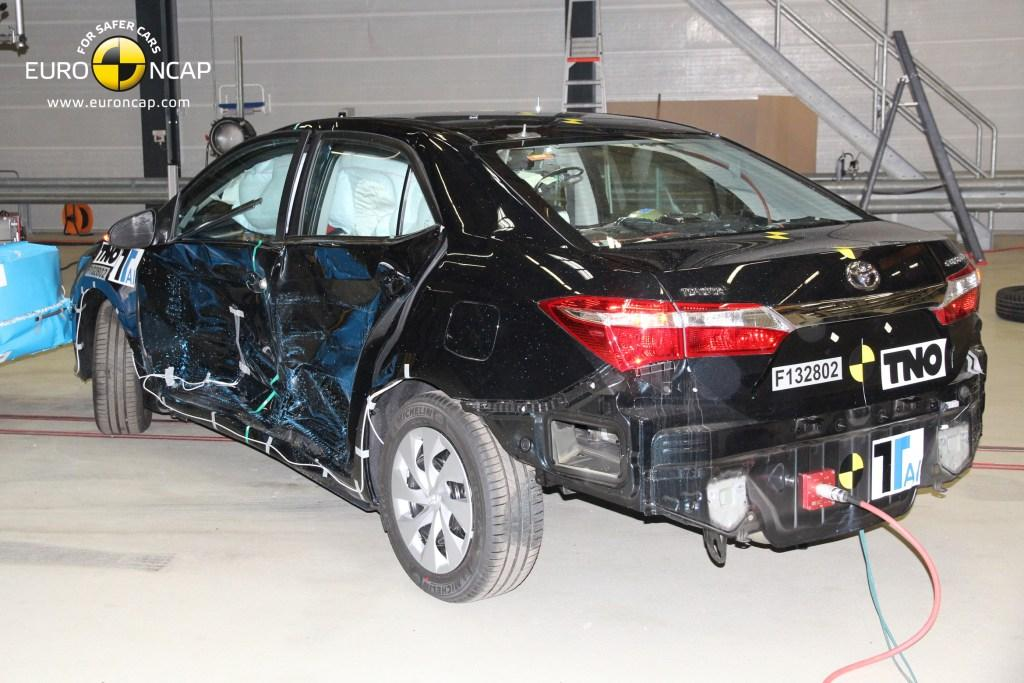 Kabina pasażerska pozostała stabilna w zderzeniu czołowym. Odczyty z czujników na manekinach wskazały dobrą ochronę kolan i ud kierowcy oraz pasażera. Model wykazał, że podobny poziom ochrony zostanie zapewniony pasażerom różnych rozmiarów, zajmujących pozostałe miejsca. W teście bariery bocznej, Corolla wykazała dobrą ochronę wszystkich obszarów ciała i model zdobył maksymalną liczbę punktów. W cięższym teście słupa bocznego ochrona klatki piersiowej była odpowiednia, innych regionów ciała dobra. Siedzenia i zagłówki zapewniły dobrą ochronę przed urazami kręgów szyjnych w przypadku uderzenia w tył.