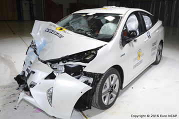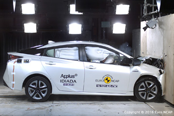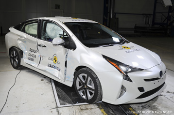 Przedział pasażerski pozostał stabilny w testach zderzenia czołowego. Czujniki umieszczone w manekinach wykazały dobrą ochronę kolan i ud kierowcy i pasażera. Toyota pokazała, że podobny poziom ochrony będzie zapewniony dla pasażerów o różnych rozmiarach oraz dla tych siedzących na różnych pozycjach. Ochrona klatki piersiowej kierowcy została oceniona jako marginalna na podstawie odczytów ściśnięcia z manekina. Na pełnej szerokości sztywnej bariery czołowego uderzenia ochrona kierowcy i pasażerów tylnych manekinów została oceniona jako dobra, z wyjątkiem piersi, których ochrona była wystarczająca. W teście barier bocznych, Prius zdobyła maksymalną liczbę punktów z dobrą ochroną wszystkich krytycznych obszarów ciała. Jednak w cięższym teście bocznym odczyty ściśnięcia klatki piersiowej wskazały słabą ochronę, wszystkie inne obszary ciała są dobrze chronione. Przednie fotele i zagłówki wykazały dobrą ochronę przed urazami kręgów szyjnych w przypadku uderzenia w tył. Prius jest standardowo wyposażony w Toyota Safety Sense, który zawiera autonomiczny system hamowania awaryjnego. NCAP ujawniła wysoką wydajność tego systemu, samochód uzyskał maksymalną liczbę punktów.
