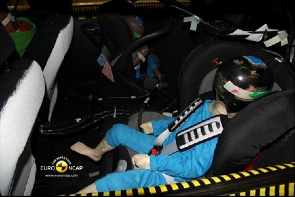 Głowa manekina 3-latka przesunęła się, w trakcie zderzenia czołowego, w przód poza rekomendowany limit co potencjalnie naraża ją na kontakt z elementami wnętrza auta. Jednak ostatecznie manekin pozostał w foteliku, również w czasie zderzenia bocznego foteliki prawidłowo chroniło 3-latka i 1,5-roczne dziecko. Poduszka powietrzna pasażera może zostać unieruchomiona by umożliwić montaż fotelika tyłem na przednik siedzeniu. Informacja o jej statusie jest jasna i klarowna. Trwała etykieta informuje o niebezpieczeństwie montowania fotelika bez dezaktywacji poduszki.