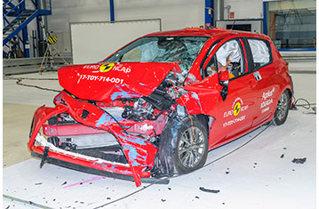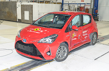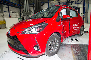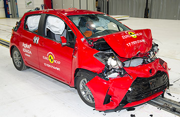Przedział pasażerski Yarisa pozostał stabilny w próbach zderzenia czołowego. Odczyty z manekinów wykazały dobra ochronę kolan i ud kierowcy oraz pasażera. Niestety struktury w desce rozdzielczej, zostały uznane jako prezentujące zagrożenie dla pasażerów o odmiennej posturze, siedzących w różnych pozycjach i ochrona tego obszaru ciała została oceniona jako mierna. Ochrona klatki piersiowej kierowcy, została również oceniona jako mierna, w oparciu o odczyty ściśnięcia klatki piersiowej. W próbie zderzenia ze sztywną barierą na pełnej szerokości, ochrona kierowcy była dobra lub wystarczająca. Natomiast miednica tylnego pasażera wsunęła się pod biodrową część pasa bezpieczeństwa i ochrona miednicy została oceniona jako bardzo słaba. Dodatkowo, w momencie uderzenia, głowa poruszała się dalej do przodu niż jest to zalecane i jej ochrona została oceniona jako mierna, mimo że wartości obrażeń manekina nie były nadmierne. W próbie bocznego zderzenia z barierą, ochrona wszystkich krytycznych obszarów ciała była dobra i Yaris zdobył maksymalną ilość punktów. Niemniej w bardziej wymagającej próbie bocznego zderzenia z słupem, odczyty z manekinów wykazały mierną ochronę klatki piersiowej i jamy brzusznej. Próby przeprowadzone na przednich siedzeniach i zagłówkach, wykazały dobrą ochronę przeciwko urazom kręgosłupa szyjnego w przypadku uderzenia w tył pojazdu. Geometryczna ocena tylnych siedzeń, również wykazała dobrą ochronę kręgosłupa szyjnego. Yaris posiada jako standardowe wyposażenie autonomiczny system hamowania awaryjnego. W próbach jego działania przy niskich prędkościach, kiedy często dochodzi do urazów kręgosłupa szyjnego, system wykazał się dobrą skutecznością działania, unikając kolizji lub łagodząc jej skutki przy wszystkich prędkościach testu.