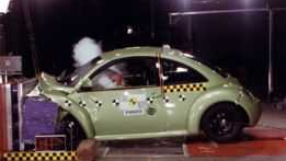 Auto wyposażone jest w dwie przednie poduszki powietrzne i napinacze pasów wraz z ogranicznikami napięcia. Mimo wszystko zanotowano duży nacisk na klatkę piersiową kierowcy oraz pasażera. Widać starania VW o bezpieczeństwo kolan i ud przednich pasażerów. Poniżej kierownicy specjalna poduszka osłania twarde elementy. Mimo wszystko sztywne części deski rozdzielczej nadal stanowią zagrożenie i spowodowały obniżenie noty.