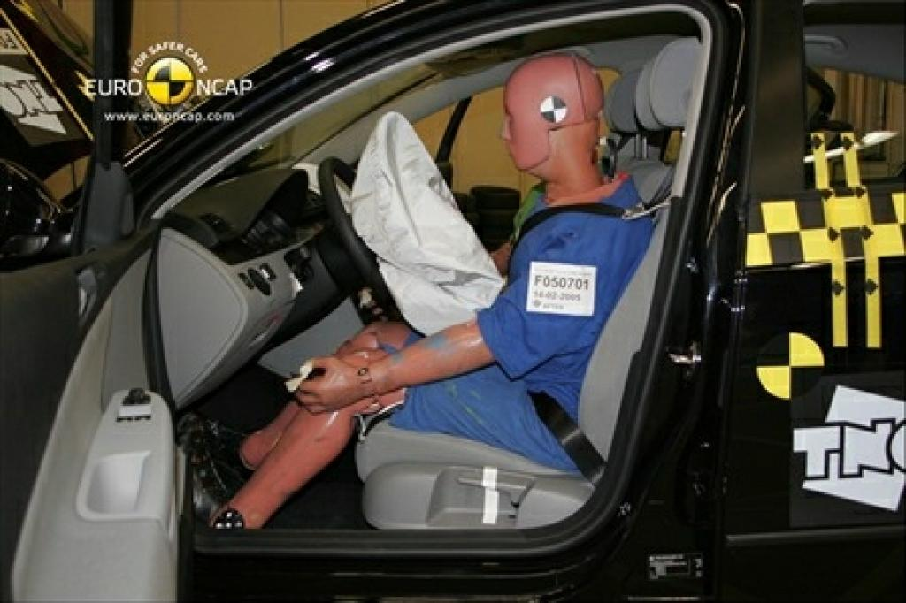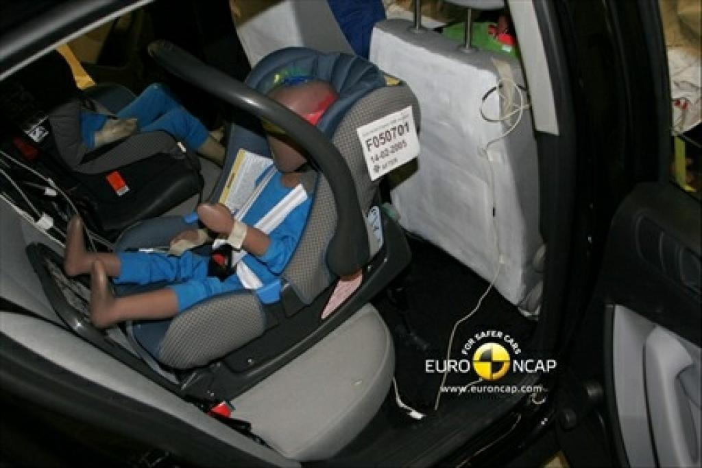 Głowa manekina 3-latka, umieszczonego w foteliku przodem, nie przesunęła się nadmiernie w czasie zderzenia czołowego. Pomiary nacisku na klatkę piersiową manekina wskazują na wystarczającą ochronę tego obszaru, dobrą - w przypadku głowy. Jeśli chodzi o zderzenie boczne - oba manekiny były prawidłowo chronione przez boki fotelików. Poduszka powietrzna pasażera może zostać unieruchomiona by umożliwić montaż fotelika tyłem. Jednak informacja o jej statusie nie jest wystarczająco jasna. Etykieta na osłonie przeciwsłonecznej wyraźnie ostrzega przed montażem fotelika przy aktywnej poduszce.