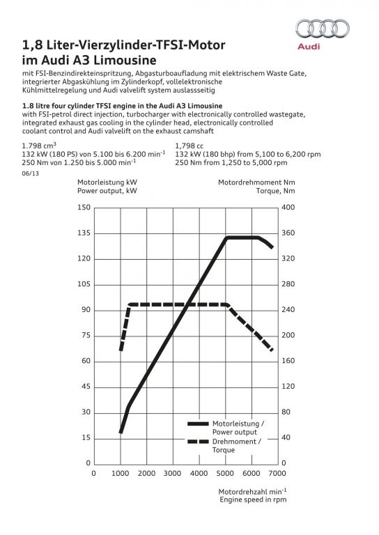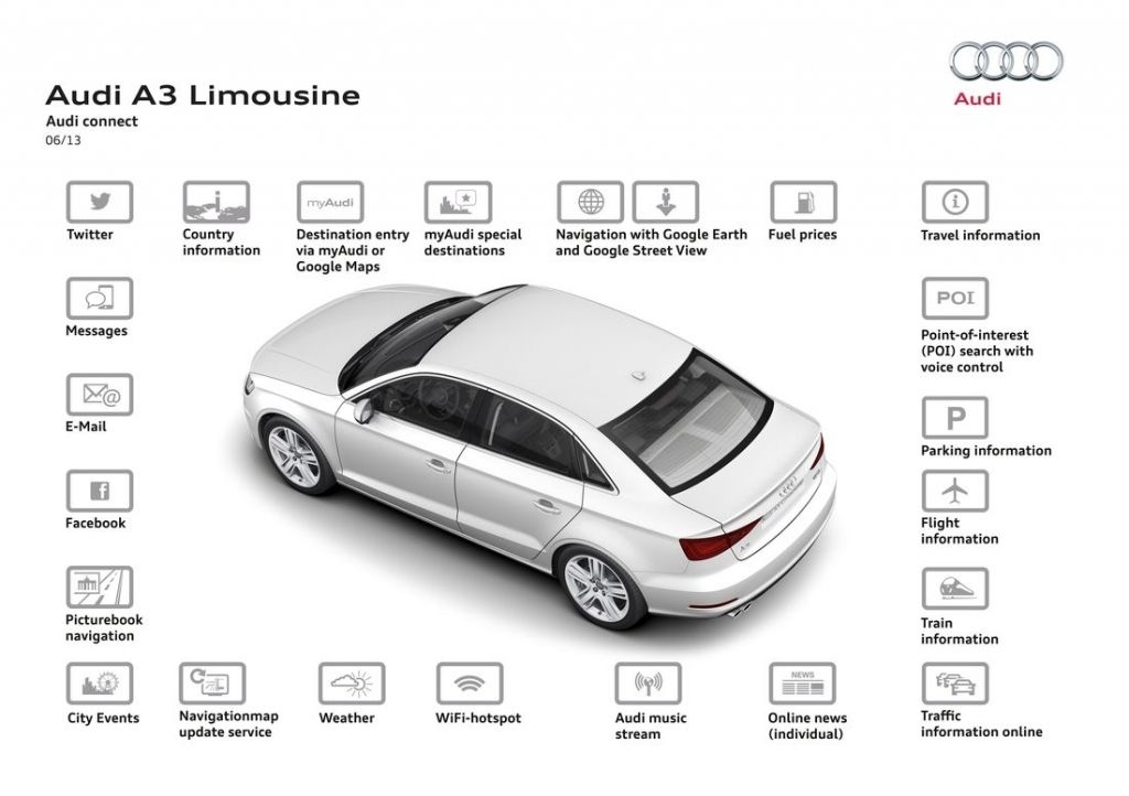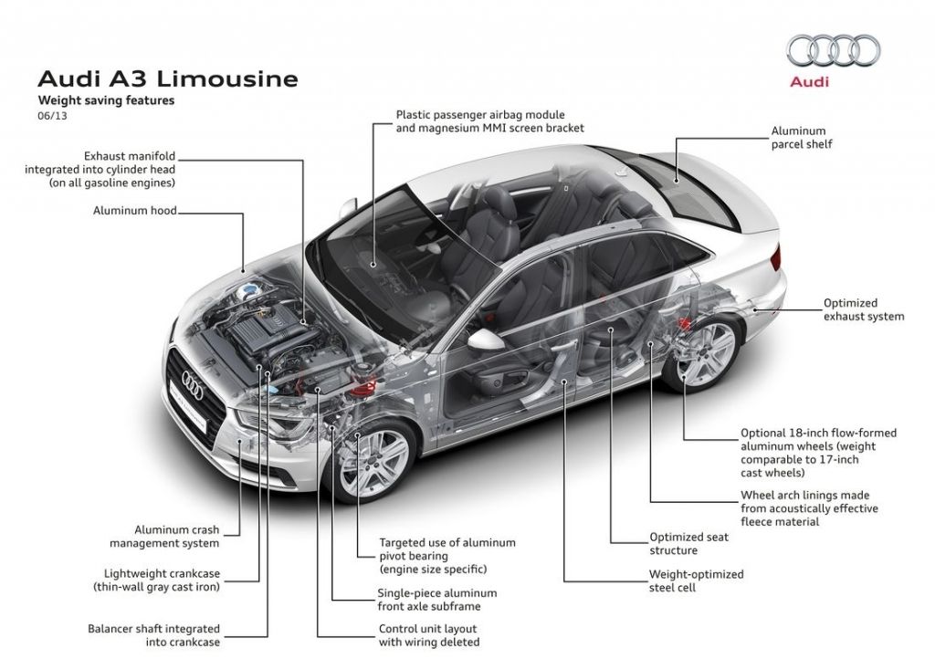 Z 4,46 m długości, 1,80 m szerokości oraz 1,42 m wysokości A3 Limousine jest tylko nieznacznie krótsze, szersze i wyższe od swojego duchowego poprzednika, Audi 80 sedan. Rzecz jasna, A3 sedan to na wskroś nowoczesne auto - wykonano je z bardzo lekkich materiałów, wyposażono w same turbodoładowane silniki (1.4 TFSI, 1.8 TFSI i 2.0 TDI), a w jego wnętrzu nie zabrakło licznych multimediów. Całość opakowano w zgrabną karoserię z ładnie wkomponowanym tyłem kryjącym 425-litrowy kufer.