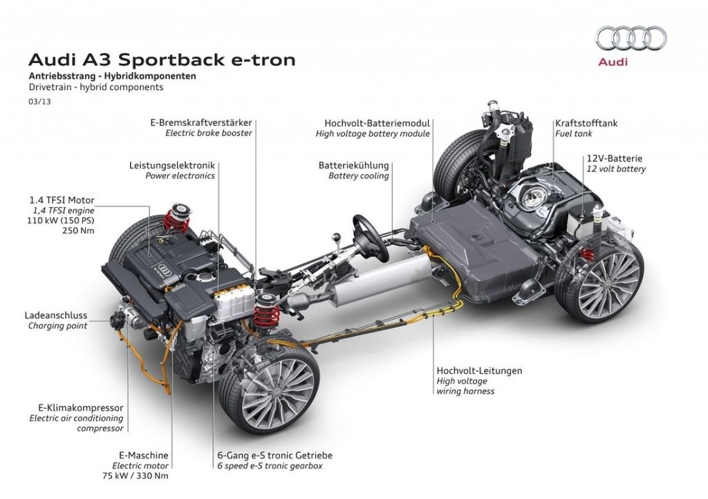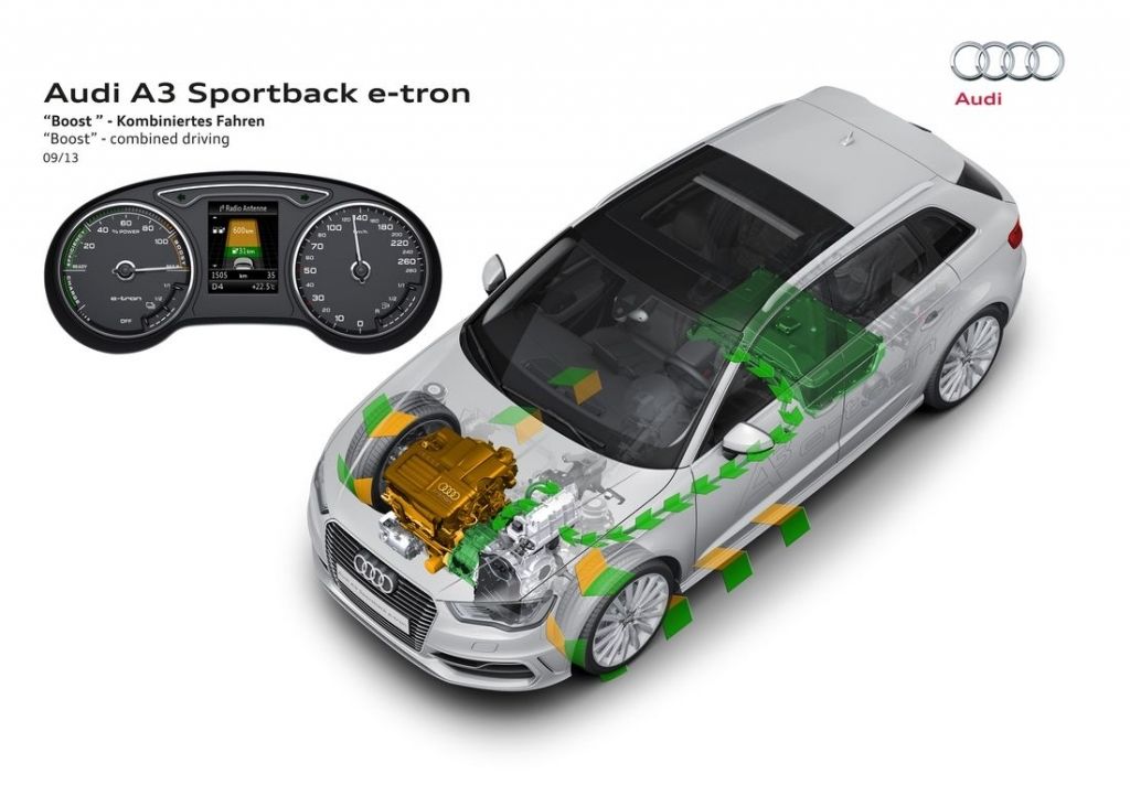 Gama hybrydowych Audi rośnie w siłę - tym razem szeregi zasiliło kompaktowe A3 e-tron, w którym do spalinowej jednostki 1.4 TFSI dorzucono silnik elektryczny, uzyskując w ten sposób napęd dynamiczny i ekonomiczny zarazem. Za sprawą 204 KM i 350 Nm przyspieszenie do 100 km/h to kwestia 7,6 sekundy, a to wszystko przy spalaniu rzędu jedynie 1,5 litra na 100 km.