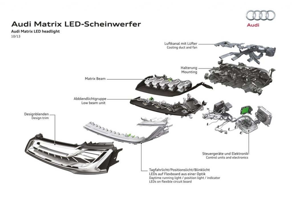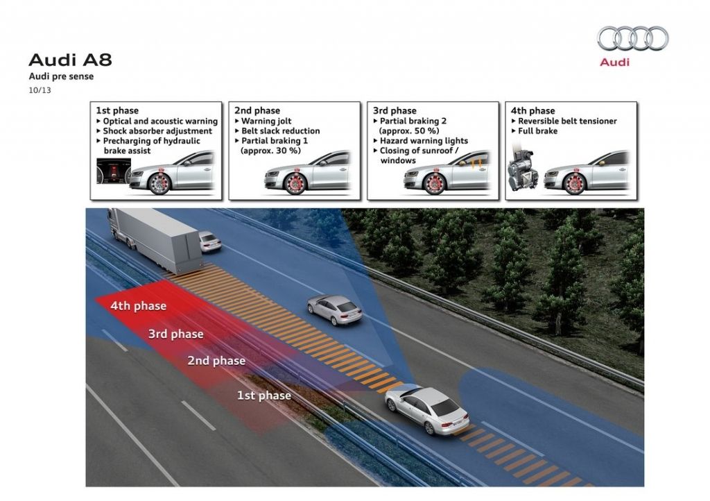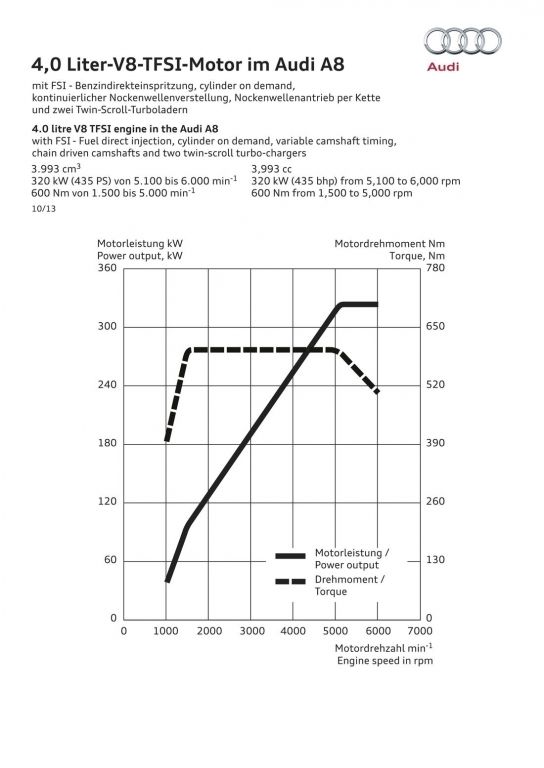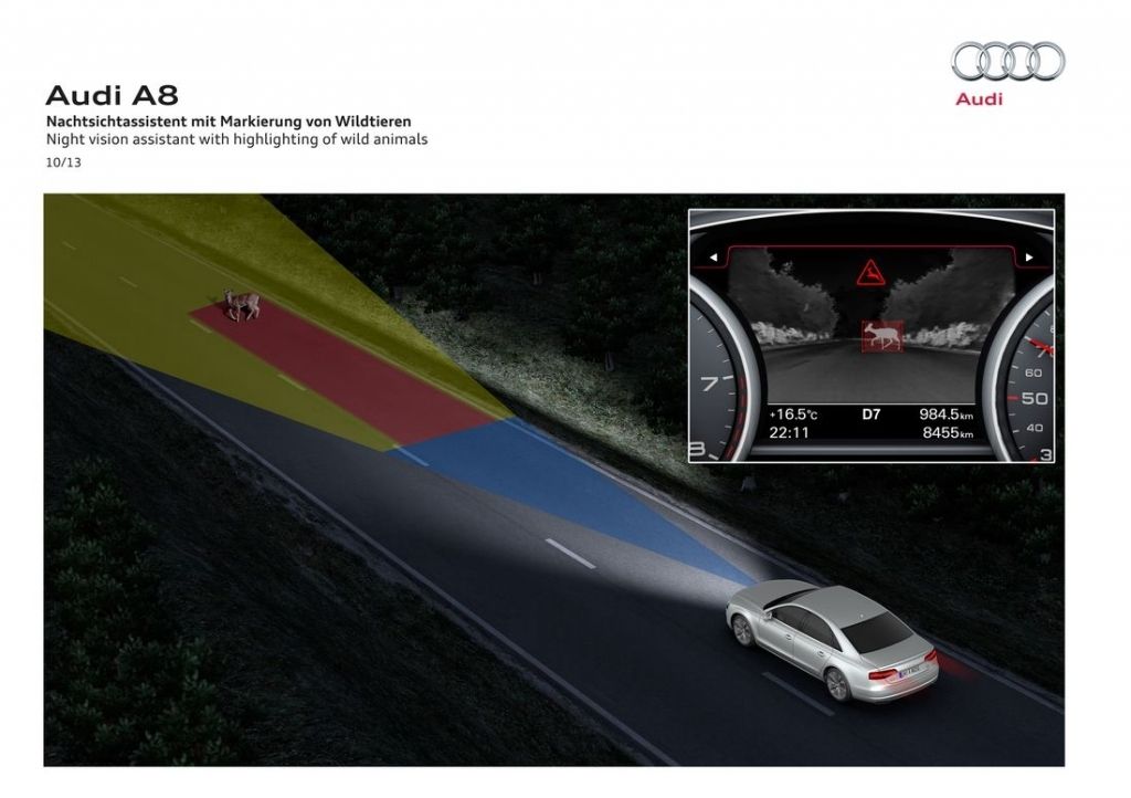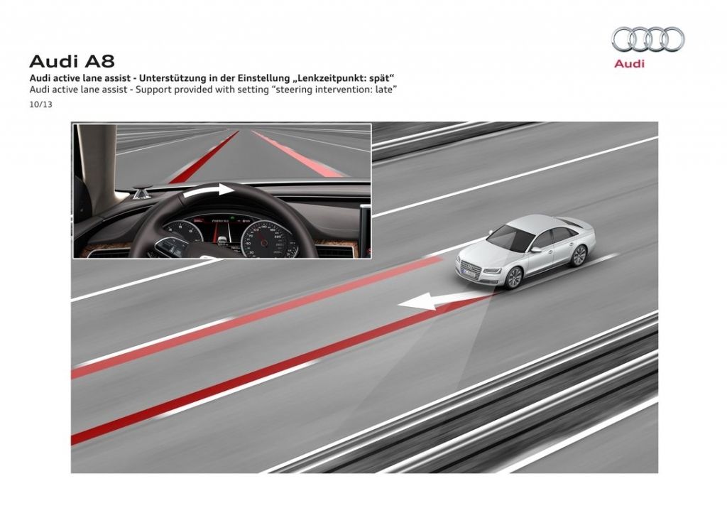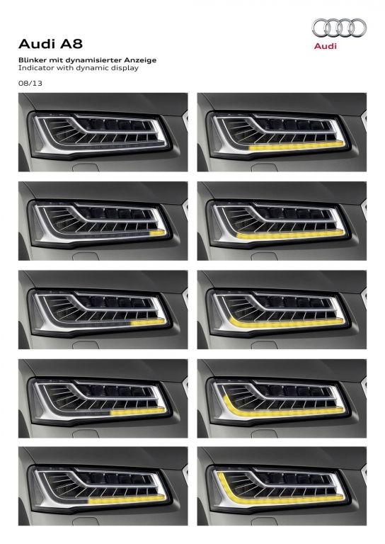 2013 rok przyniósł flagowej limuzynie Audi kurację odświeżającą. Główną zmianą wprowadzoną w jej ramach okazują się całkowicie nowe reflektory, które za sprawą technologii Matrix LED potrafią automatycznie dostosować się do warunków drogowych, włączając lub wyłączając poszczególne diody. Poza nowymi światłami, A8 D4 po liftingu dostało przeformowane zderzaki oraz zmienioną paletę wyposażenia.