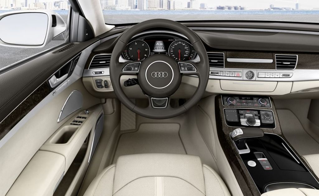 Audi bardzo ostrożnie podchodzi do zmian stylistycznych swoich modeli, nawet wprowadzając na rynek zupełnie nową konstrukcję. Nic więc dziwnego, że face-lifting Audi A8 D4 obył się bez designerskich rewolucji. Przeprojektowano zderzaki, dodając im więcej ozdobników, odświeżono lampy, montując w nich multum (specjalnie zaprojektowanych) diod LED, a wnętrzu sprezentowano głównie nową kierownicę.