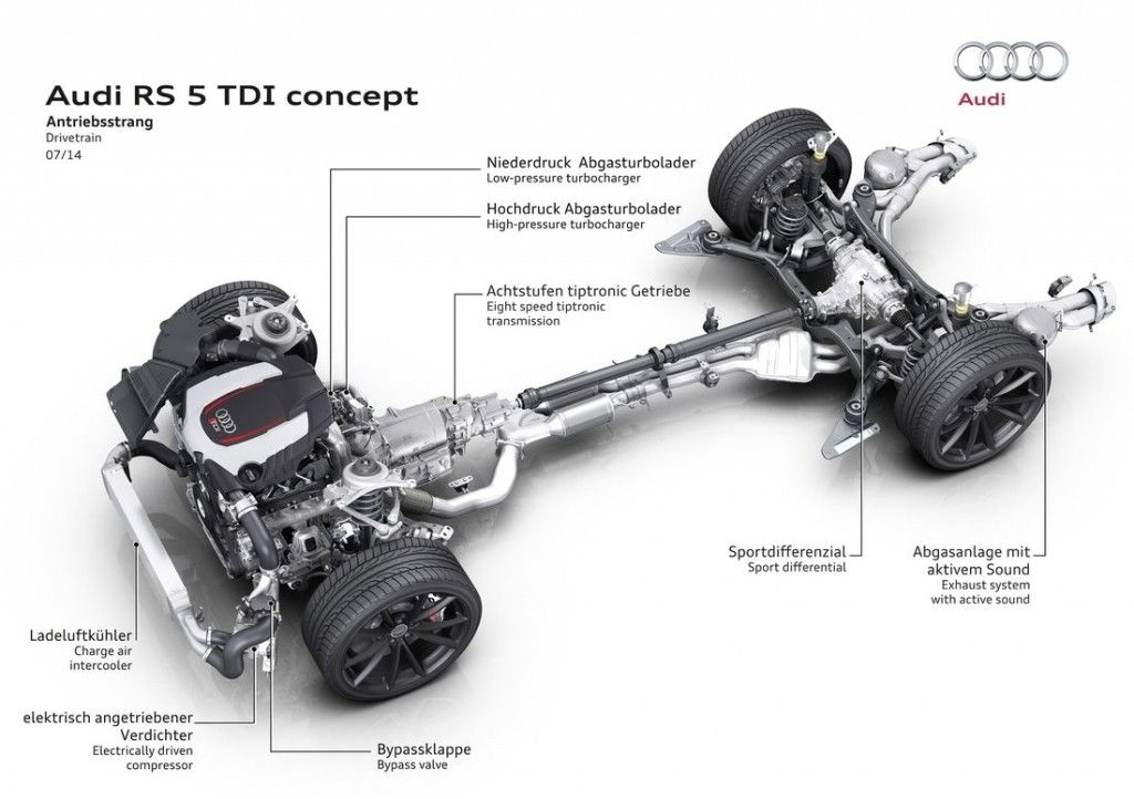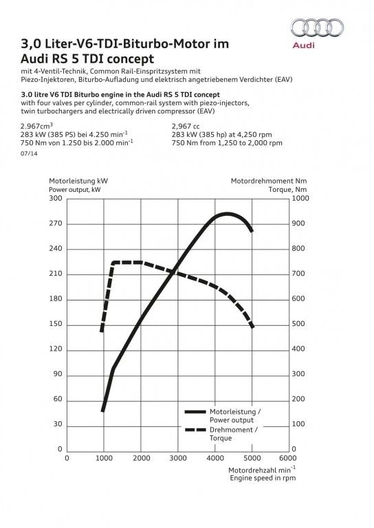 Popularna i ceniona seria wysokoprężnych silników TDI ma już na karku ćwierć wieku. Aby uczcić jej jubileusz, Audi skonstruowało dla sportowego modelu RS5 nowego, bardzo mocnego diesla. Pod maskę prototypowej wersji trafił 3-litrowy, podwójnie turbodoładowany motor V6, którego charakterystyczną cechą jest dodatkowa, elektryczna turbosprężarka. Dzięki niej silnik generuje 385 KM i aż 750 Nm, co przekłada się na sprint do "setki" wynoszący 4 sekundy. Spalanie ustalono na zaledwie 5,3 l/100 km.