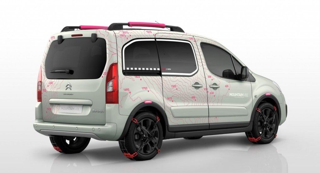 Choć jako kombivan Berlingo z zasady jest samochodem bardzo wszechstronnym, Citroen zdecydował się podnieść jego możliwości. Na bazie osobowej odmiany nadwoziowej Multispace zaprojektował studium Mountain Vibe, które dzięki łańcuchom śniegowym oraz systemowi Grip Control (dającemu namiastkę napędu 4x4) ułatwia poruszanie się po górskich trasach. Przy okazji francuskie auto otrzymało ciekawą kolorystykę, w której stonowanemu lakierowi towarzyszą jaskrawe detale.