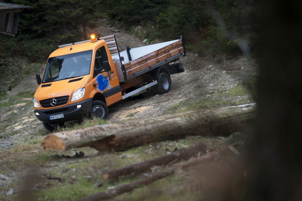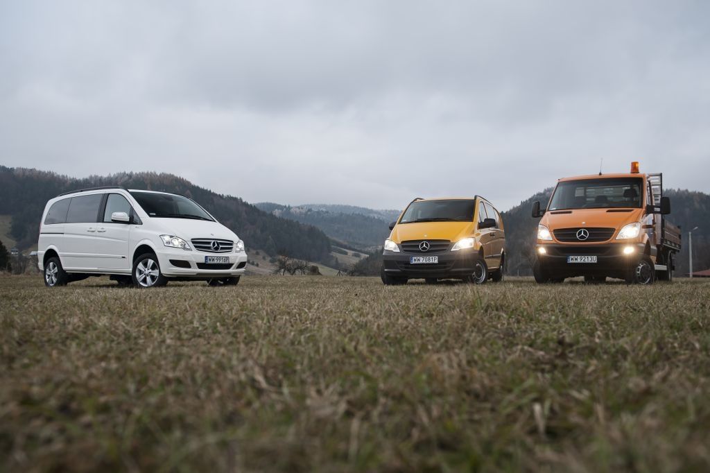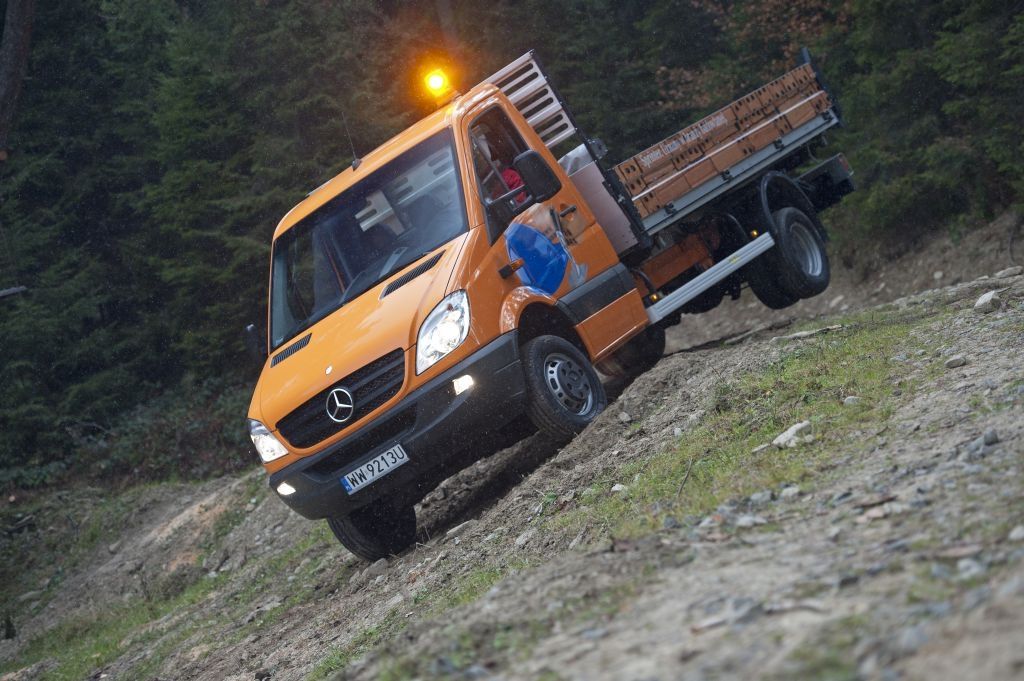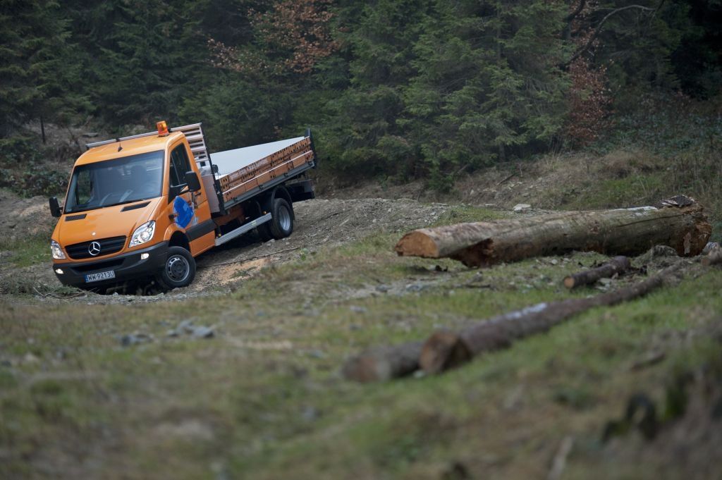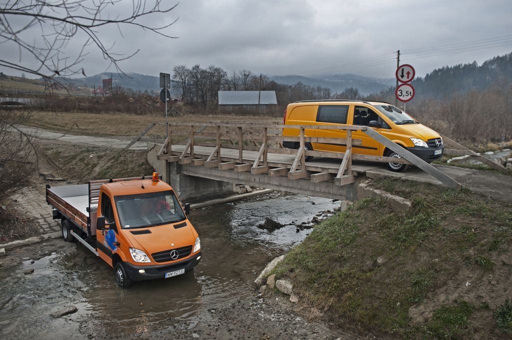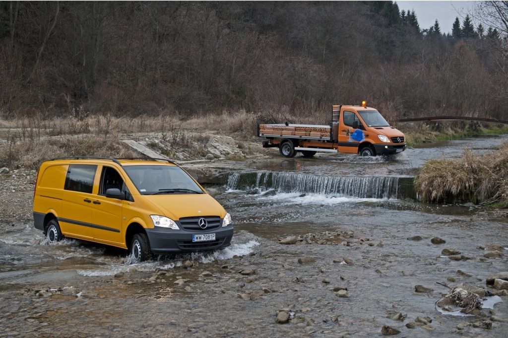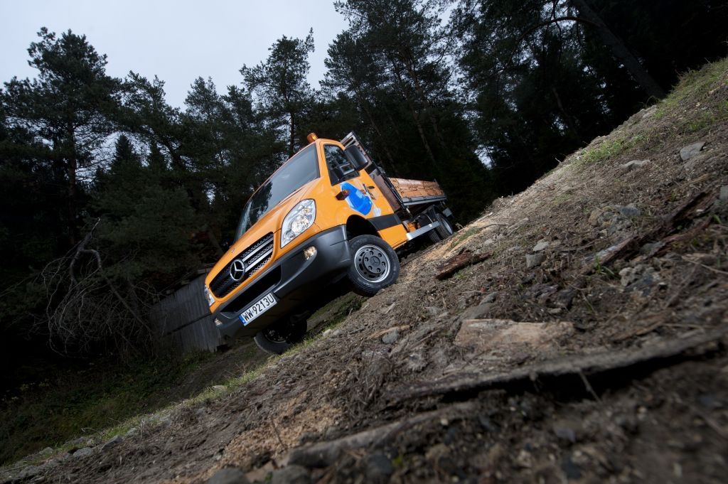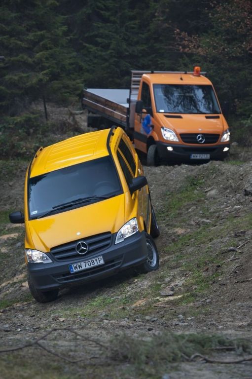 Kiedy trzeba przewieźć coś naprawdę dużego, a droga wiedzie przez wertepy "osobówka" z napędem jednej osi może nie wystarczyć. W takiej sytuacji z pomocą przychodzą "dostawczaki" wyposażone w napęd na wszystkie koła - takie jak np. prezentowane na zdjęciach Mercedesy. Fotografie w wykonano podczas oficjalnej prezentacji aut zorganizowanej w Krynicy-Zdroju.