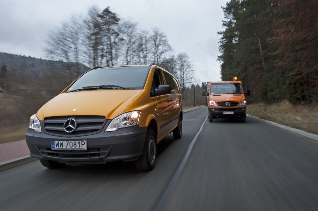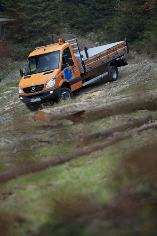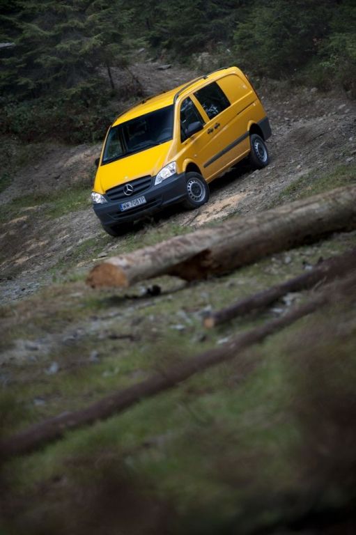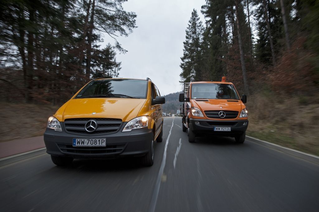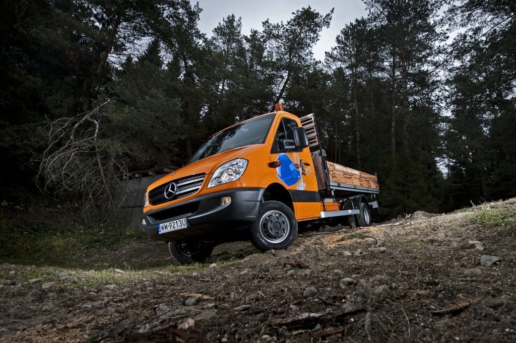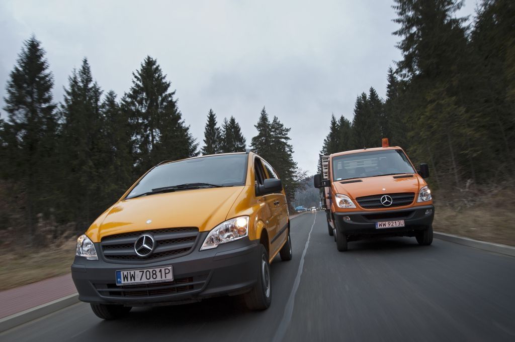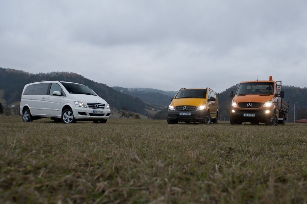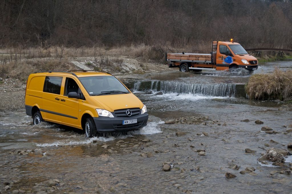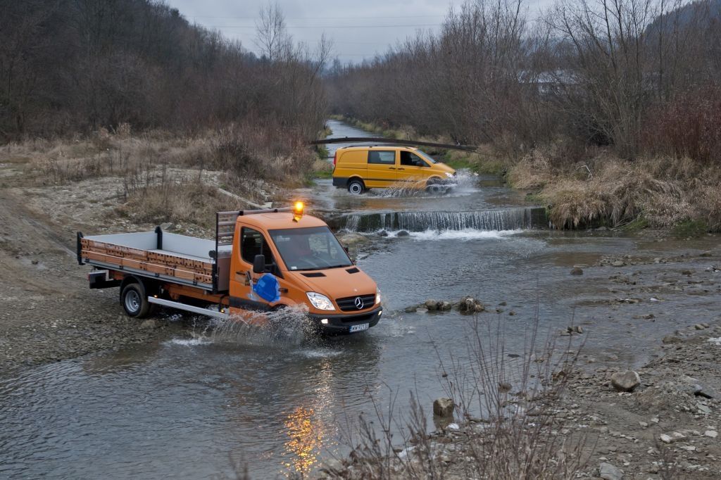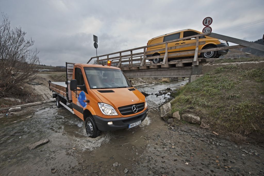 Kiedy trzeba przewieźć coś naprawdę dużego, a droga wiedzie przez wertepy "osobówka" z napędem jednej osi może nie wystarczyć. W takiej sytuacji z pomocą przychodzą "dostawczaki" wyposażone w napęd na wszystkie koła - takie jak np. prezentowane na zdjęciach Mercedesy. Fotografie w wykonano podczas oficjalnej prezentacji aut zorganizowanej w Krynicy-Zdroju.