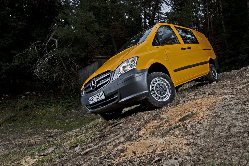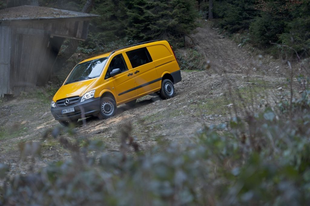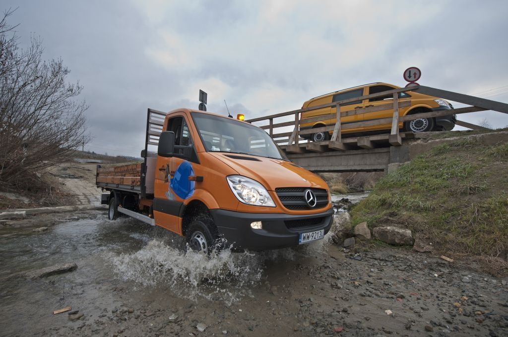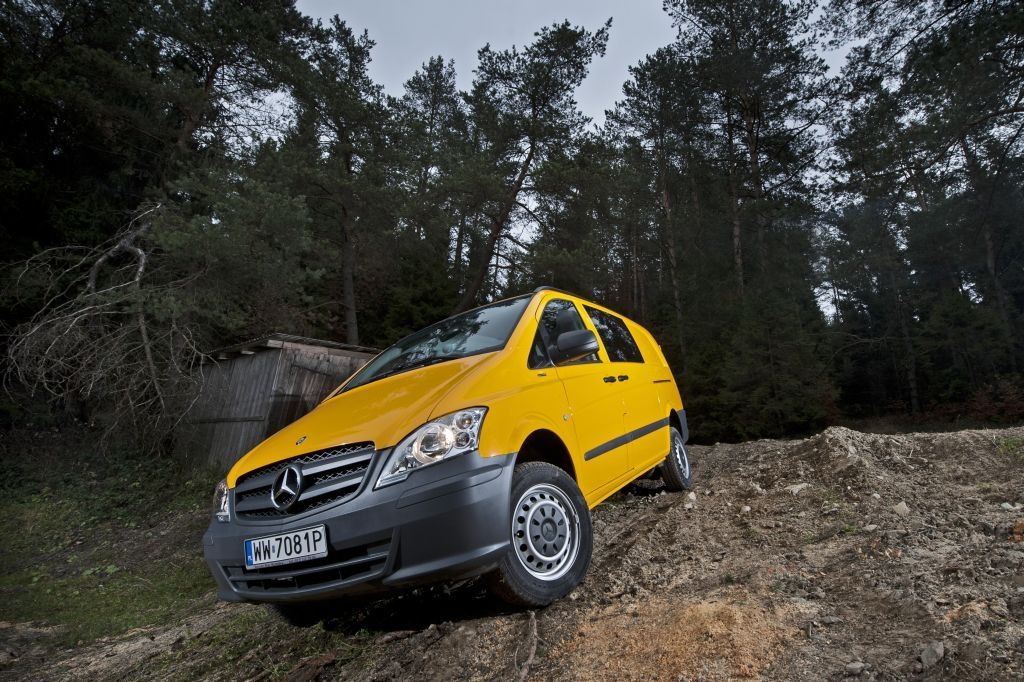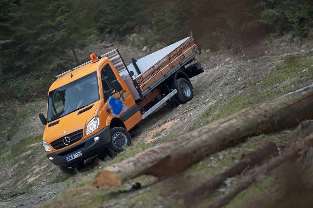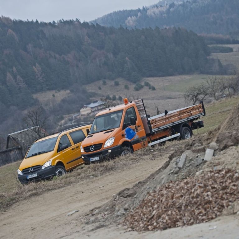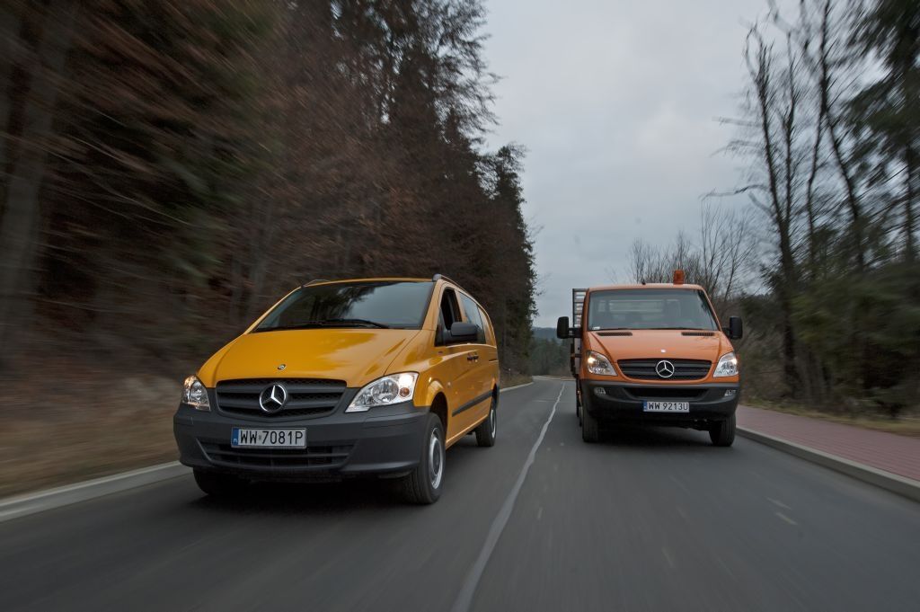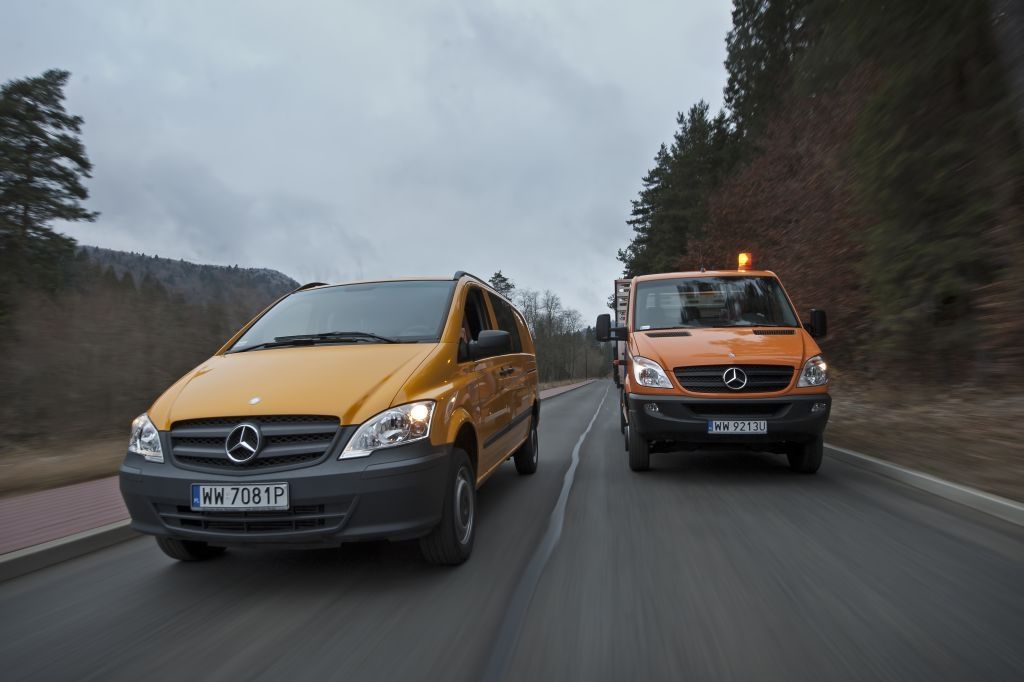 Kiedy trzeba przewieźć coś naprawdę dużego, a droga wiedzie przez wertepy "osobówka" z napędem jednej osi może nie wystarczyć. W takiej sytuacji z pomocą przychodzą "dostawczaki" wyposażone w napęd na wszystkie koła - takie jak np. prezentowane na zdjęciach Mercedesy. Fotografie w wykonano podczas oficjalnej prezentacji aut zorganizowanej w Krynicy-Zdroju.