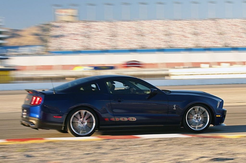W dobie samochodów służących do jazdy o kropelce i oszczędzania środowiska naturalnego, warto czasem przyjrzeć się autu, które za nic ma wskaźniki zużycia paliwa i emisji dwutlenku węgla. A właśnie takim autem jest prezentowany na zdjęciach Shelby 1000. Ten mocno zmodyfikowany Ford Mustang kryje pod przednią klapą prawdziwego potwora - 5,4-litrowy silnik V8, który dzięki całej masie pieczołowicie wzmocnionych elementów jest w stanie mocą maksymalną pobić... Bugatti Veyrona. Dokładnie rzecz biorąc, rozwija 950 KM w wersji dopuszczonej do ruchu publicznymi drogami i aż 1100 KM w odmianie wyścigowej. Ze względu na gigantyczną liczbę mechanicznych rumaków, spece z Shelby zafundowali Mustangowi potężny wał napędowy, wydajne hamulce z 6- i 4-tłokowymi zaciskami, sztywne zawieszenie oraz aerodynamiczne podzespoły nadwozia.