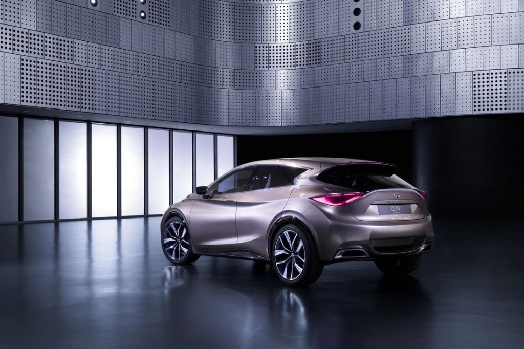 Atak na klasę luksusowych kompaktów wyszedł Lexusowi tak sobie, ale Infiniti chce zagrozić niemieckim tuzom tego segmentu znacznie skuteczniej. Do walki przygotowuje Q30, którego studium widzimy na poniższych zdjęciach. Auto ma 4,46 m długości, 1,85 m szerokości i 1,47 m wysokości, a jego finezyjna stylistyka zostać ma w 95 % przeniesiona do modelu seryjnego. Ten będzie produkowany w brytyjskim Sunderland, u boku wielu propozycji Nissana.
