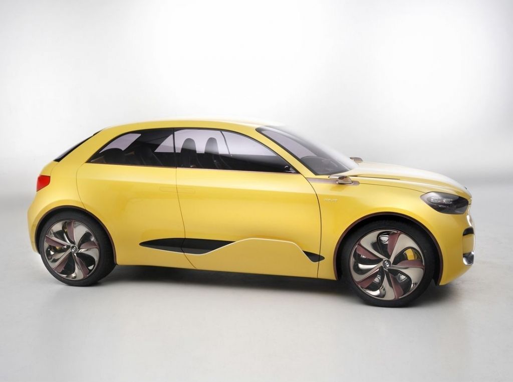 Kia przyzwyczaiła nas do samochodów o wyrazistych przetłoczeniach, ostrych kształtach i agresywnych detalach, dlatego debiut mocno zaokrąglonego prototypu CUB był dla nas sporym zaskoczeniem. Karoserię hatchbacka (choć Kia uważa, że to 4-drzwiowe coupe...) cechują niewielkie gabaryty (w tym niecałe 4 metry długości), diodowe światła, drzwi tylne otwierane "pod wiatr" i brak słupków B.