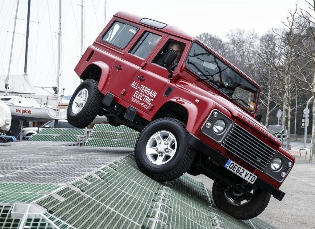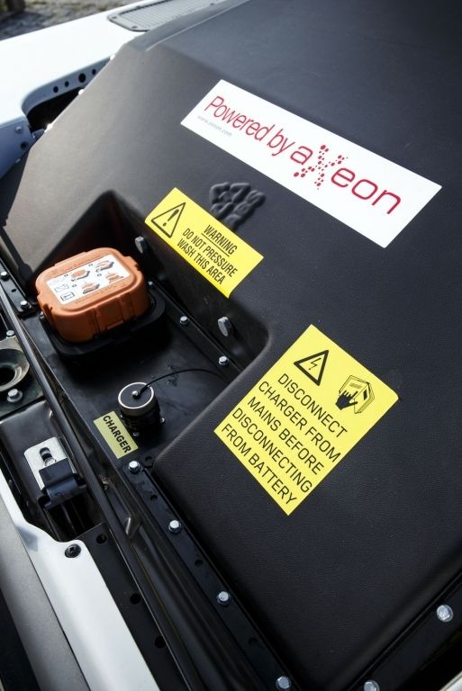 Pozory mylą - choć prezentowany na zdjęciach Land Rover Defender wygląda zwyczajnie, pod archaiczną karoserią kryje na wskroś nowoczesną technikę. Chodzi tu przede wszystkim o napęd elektryczny, który silnik rozwijający 95 KM i 330 Nm łączy z baterią litowo-jonową o pojemności 27 kWh. Zasięg ekologicznego Defendera to zaledwie 80 km, przez co trudno sobie wyobrazić, aby pracował w terenie.