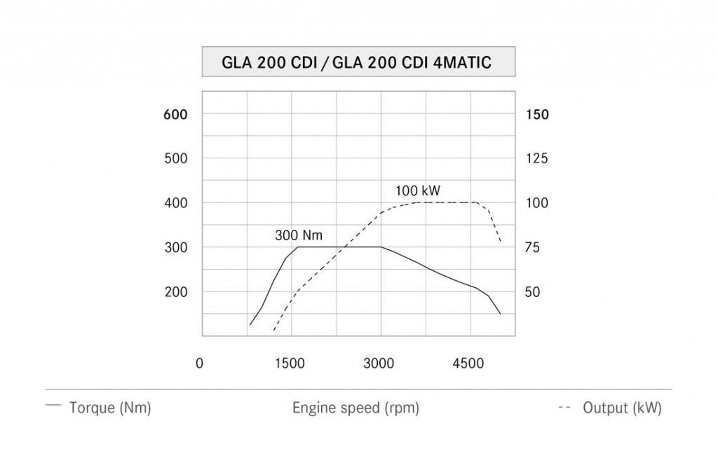 W szerokim wachlarzu odmian silnikowych Mercedesa GLA ta najsłabsza to wysokoprężna wersja 200 CDI. Pod jej maską kryje się 2,1-litrowy diesel, który do dyspozycji kierowcy daje 136 KM oraz 300 Nm. Druga z wartości gwarantuje niezłą elastyczność, choć 10-sekundowe przyspieszenie od 0 do 100 km/h nie każdego usatysfakcjonuje. Każdy powinien za to uśmiechnąć się na wieść o spalaniu - wg producenta średnie zużycie ON wynosi 4,3-4,4 l/100 km.