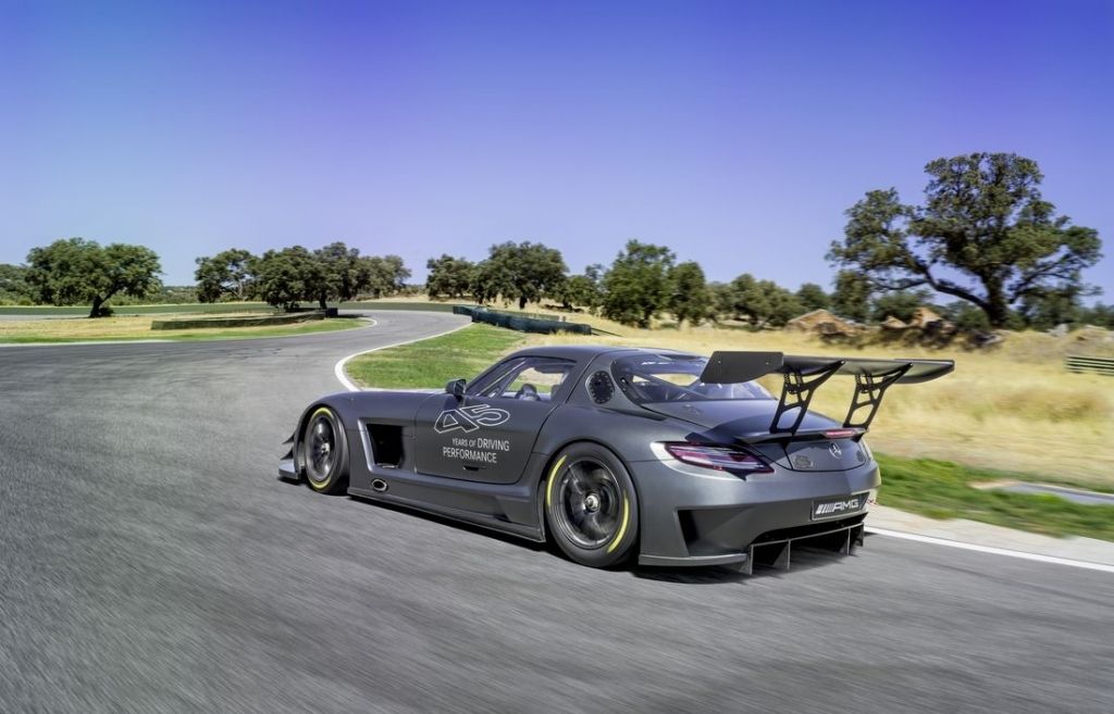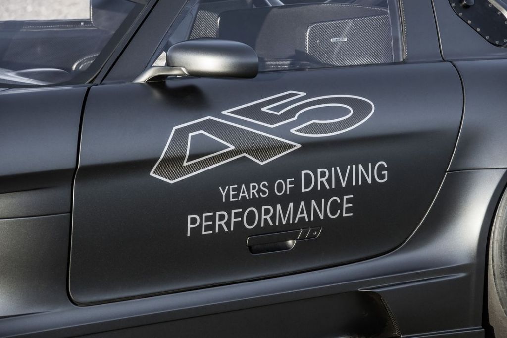 Aby należycie uczcić swoje 45-lecie, AMG zafundowało swoim (najbogatszym) klientom limitowaną edycję wyścigowego SLS-a AMG GT3. Samochód wyróżniono z zewnątrz specjalnie przygotowanym, matowym lakierem i unikalnymi felgami, wewnątrz zaś aplikacjami z włókna węglowego i klatką bezpieczeństwa polakierowaną w tej samej barwie, co nadwozie. Produkcję Mercedesa SLS AMG GT3 45th Anniversary ograniczono do zaledwie pięciu sztuk.