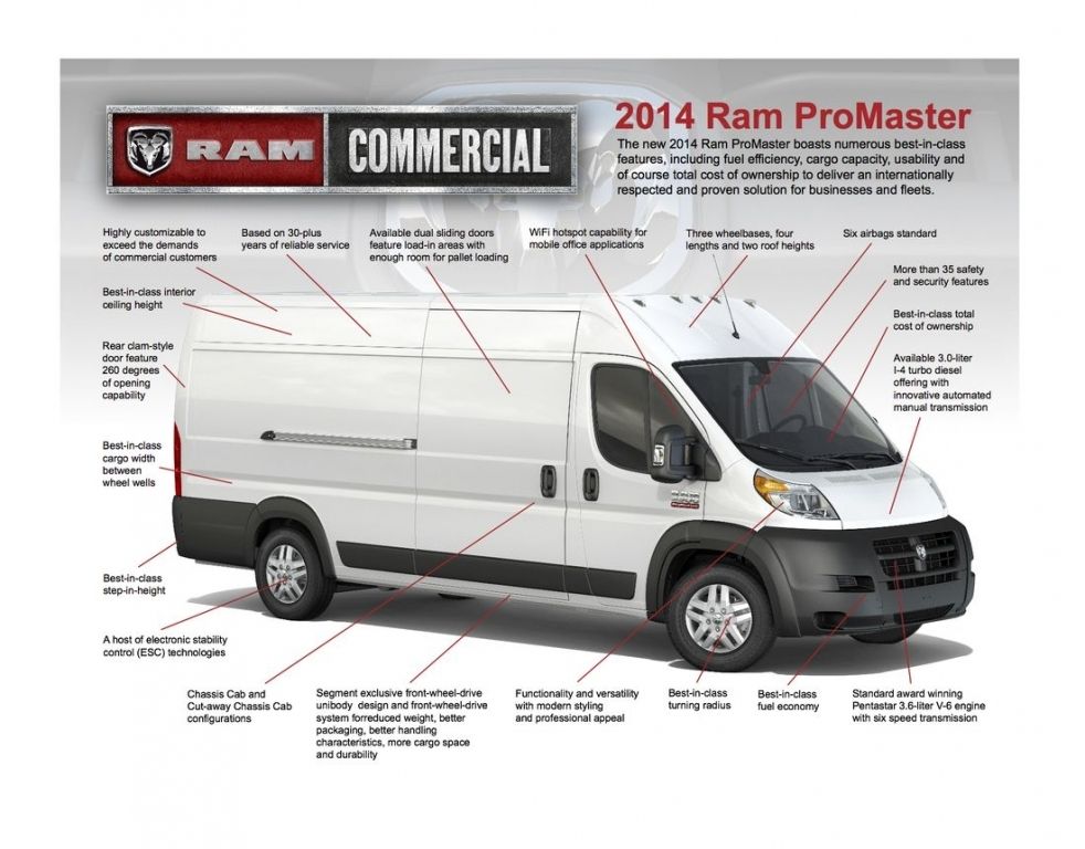 Owoce współpracy Fiata z Chryslerem to nie tylko Lancia Voyager czy Fiat Freemont - zapożyczenie rozwiązań technicznych od partnera działa także w drugą stronę. Przykład? Ram ProMaser, w którym pokrewieństwo z popularnym na naszych drogach Fiatem Ducato widać jak na dłoni. W ślad za włoskim "dawcą organów", ProMaster dostępny jest w kilku wersjach nadwoziowych. Inna jest w nim za to oferta silnikowa - z "benzyniakiem" 3.6 V6 Pentastar o mocy 280 KM i dieslem 3.0 oferującym 174 KM.